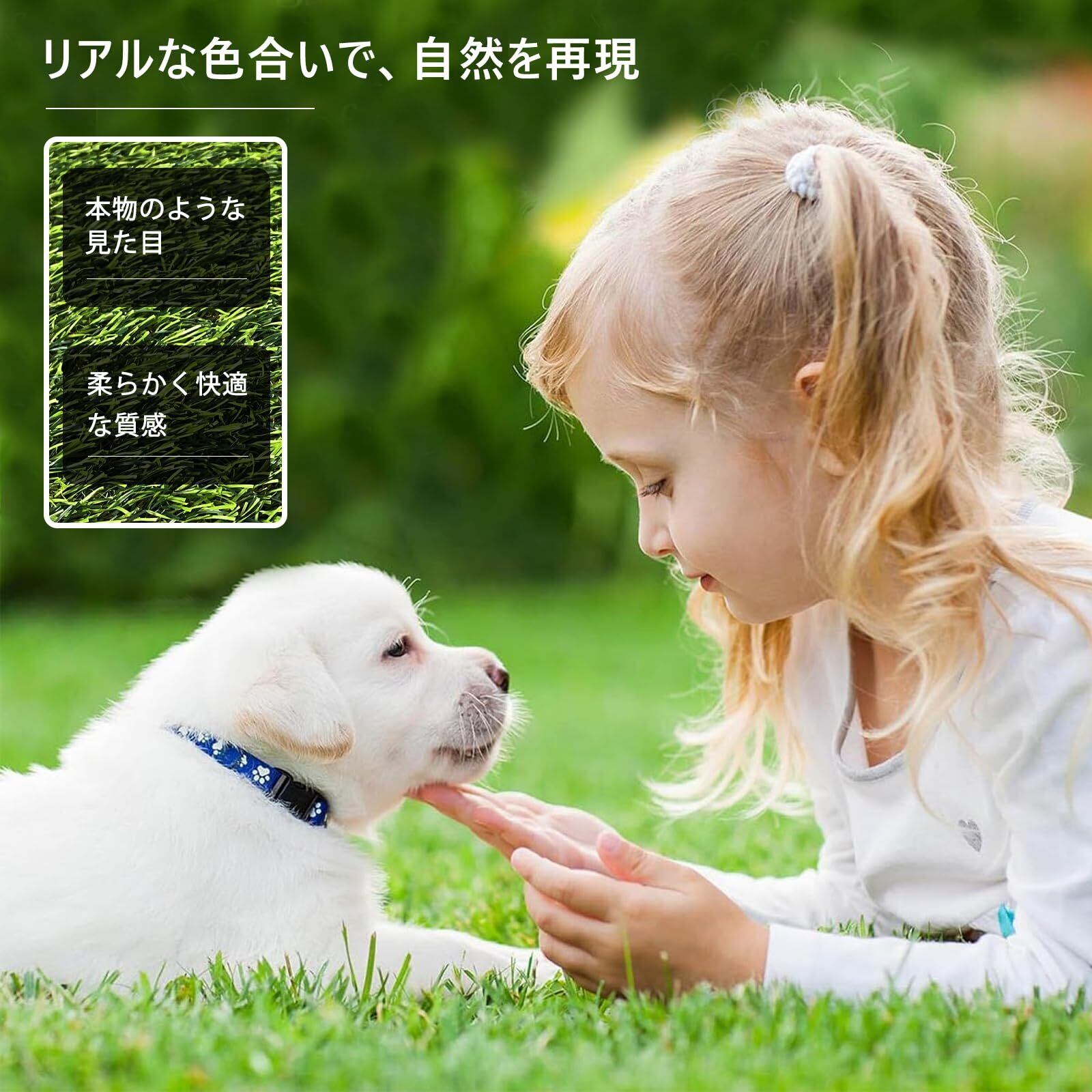 天然芝を凌駕する美しさ:人工芝は、0.5m×5mのサイズで、芝丈30mm、重さ約3.5kgという仕様を誇ります。強度・耐久性をアップさせた3層構造で水はけの良い平織り基布を採用し、排水孔がなくても水はけが良くなります。つや消し加工とUVカット加工により、少なくとも5年間は鮮度を保つことができます。設置も簡単で、固定用のU字ピンにより、手間をかけずに設置できます。