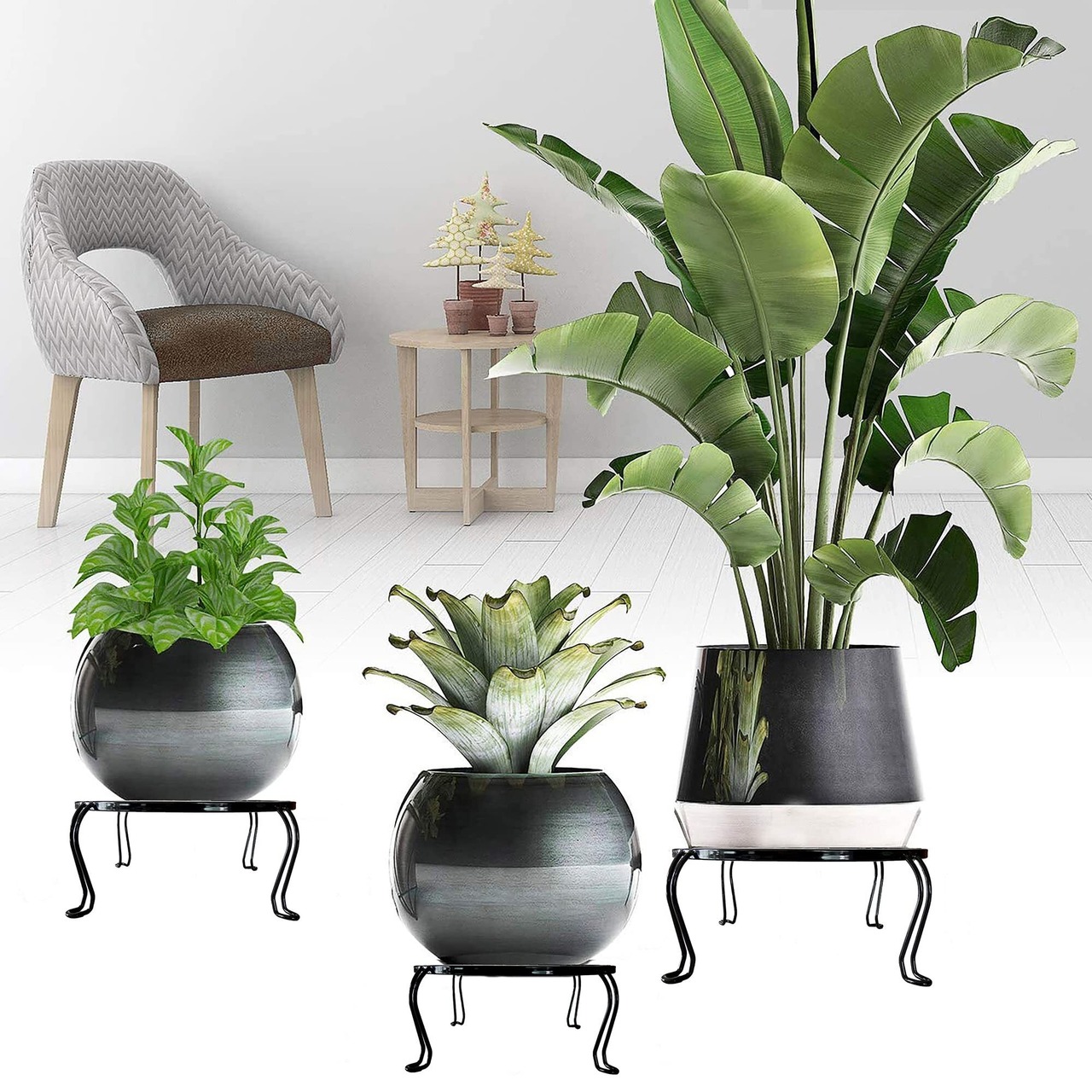BOLESKA 4個組花台 アイアンフラワースタンド 観葉植物 植木鉢スタンド 猫脚付鉢置き プレート 飾り台 ガーデニング アンティーク 室内 屋外 おしゃれ(4個-ブラック) | 毎日発送✿はなまる