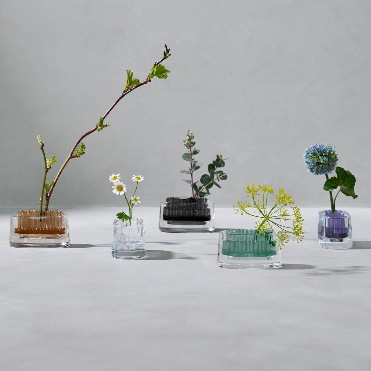 宝石の色をイメージした剣山に美しく透き通るバリウムガラス