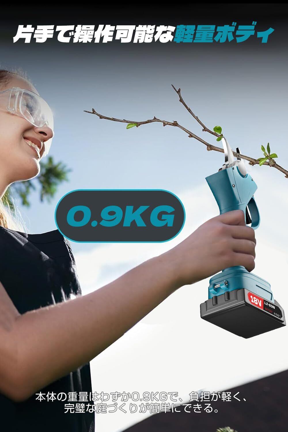 【プロの園芸サポート】 電動ハサミ 充電式 剪定はさみ ブラシレスモーター 30mm直径切断 4段階開き角度調整可能 剪定バサミ 電動ばさみ 剪定鋏 枝切り 18V大容量バッテリー×2 4枚刃 軽量 剪定鋏 庭木/果樹/園芸 日本語取扱説明書付き
