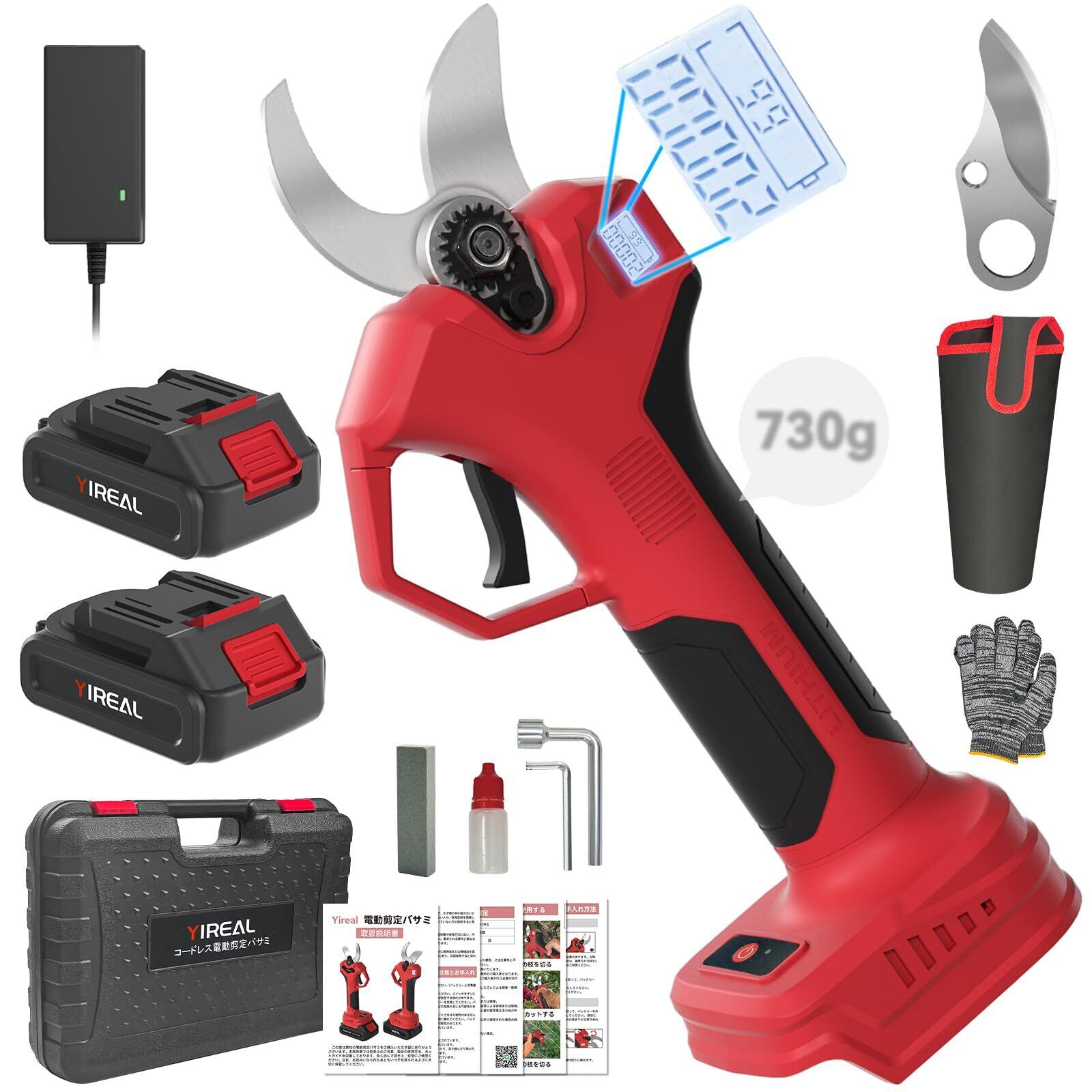 【30mm切断径&山本造園会社監修】Yirealの充電式剪定鋏はさいだい切断径30mmの枝を楽々に切れます。開き口は半開・全開の2段階に調節できる、半開なら小さな開口は作業時間と電力を節約し、全開なら太い枝を簡単に切れます。弊店の電動バサミは山本造園会社監修で植木屋さんが楽に剪定作業するために開発しました。この10年に世界中2万の造園会社に10万以上の植木屋さんが利用しています。