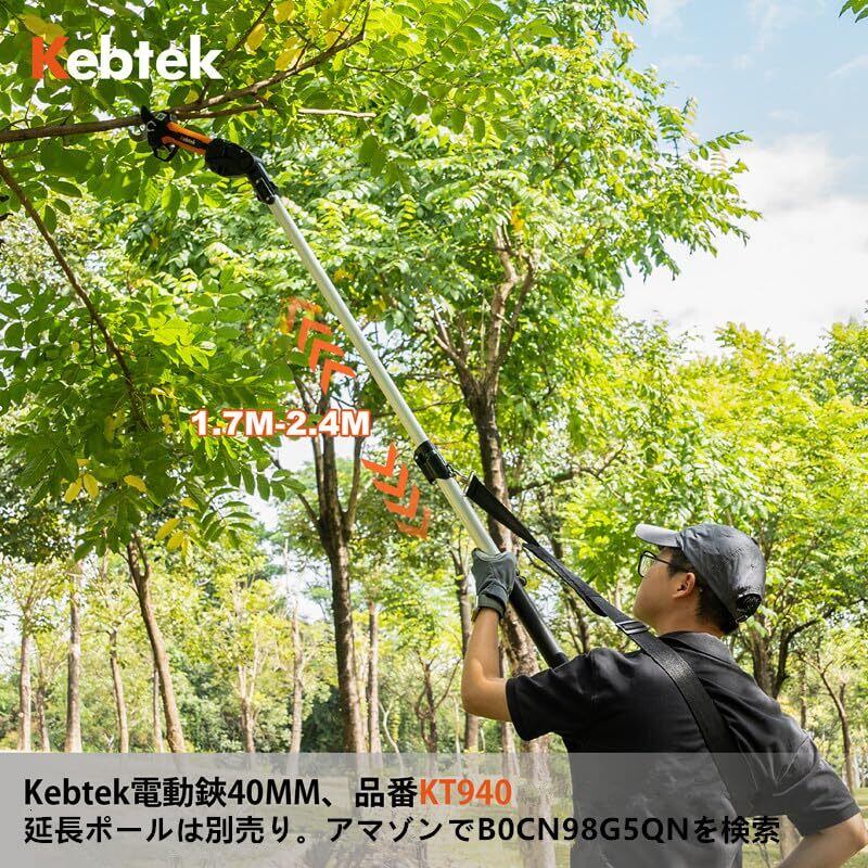 【Kebtek互換3兄弟、パワフル】:電動剪定鋏KT940、KT E35とKT 933はポール、バッテリー、充電器互換できます。お客様の保管空間と負担を減らします。Kebtekの充電式剪定鋏には全部ブラシレスモーターを採用しています。負荷が掛かった時に、抵抗が感じるではなく、さらにもう一押しするような感じがあります。庭木の剪定、造園作業、伐採や刈り枝の処理には抜群の作業能力で欠かせなくなります。腕、肩への負荷が小さく、園芸作業を楽にします。