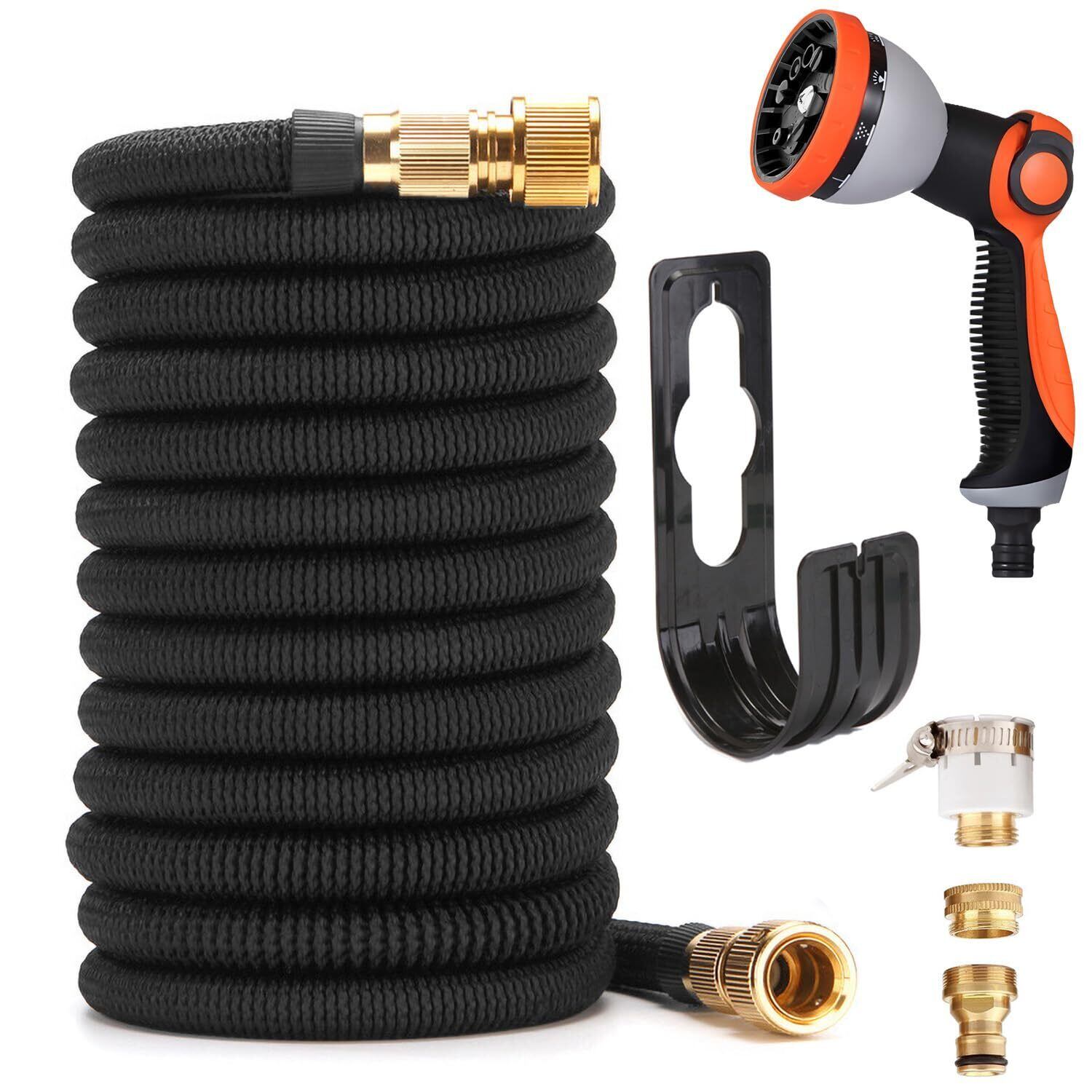 堅塁金物 伸びるホース 散水ホース3倍伸びる 洗車 水やり 庭 ベランダ 園芸 花壇 大掃除用 10種類の散水モード 3つのコネクタ さまざまなタイプの蛇口に対応 (7.5Mから22.5Mまで, ブラック) | 毎日発送✿はなまる