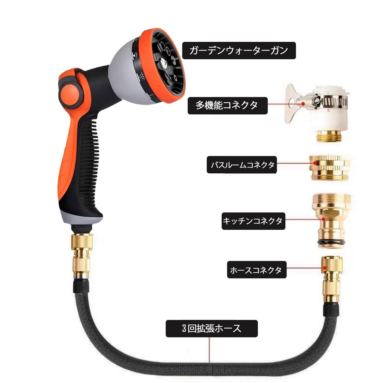【収納が簡単】伸びる ホースには特別なホースフックが付属しており、壁に掛けたり、蛇口に直接掛けたりできます。 使用後のホースの重さは、水を完全に排出した後、わずか960gです 従来のゴムホースに比べ軽量で、穴あきリールを持ち運ぶ必要がありません 保管が容易で小型で保管スペースを気にしませんねじれたり絡まったりしません。