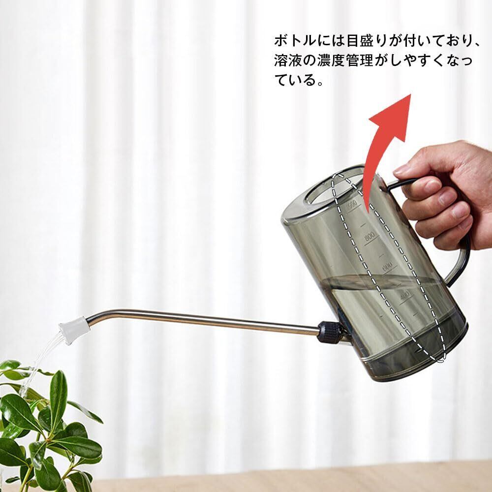 透明デザインで水量を簡単管理:半透明のシンプルな外観に明確な目盛りを備えており、残りの水量を簡単に確認できます。水量を正確に調整できるだけでなく、肥料の混合にも便利。植物に最適な水分を効率よく与えることができます。