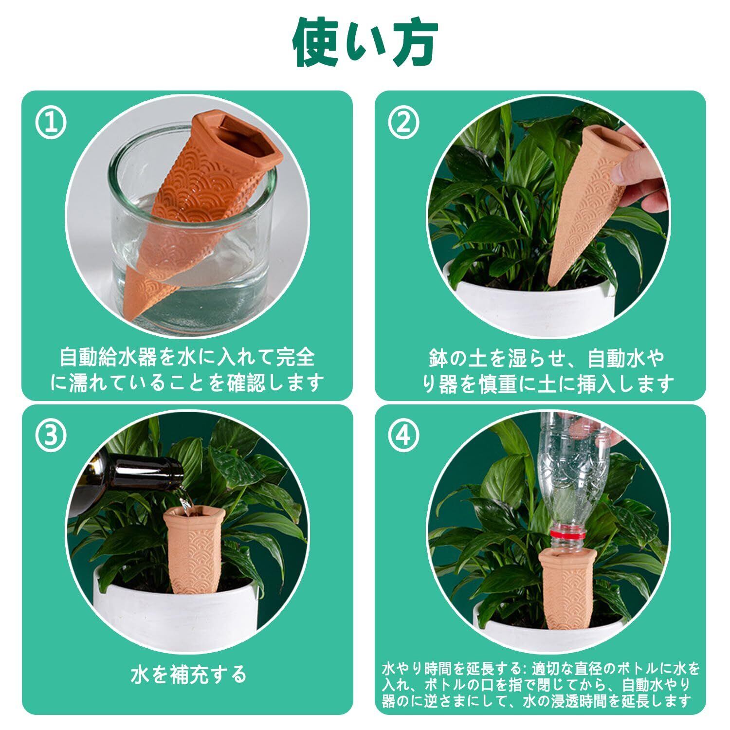 YBHWOGI 自動水やり器 植物 水やり 自動給水器 自然素材陶土製 鉢植え用 持続保湿式 留守中も安心 ペットボトルに対応 室内 ベランダ対応 (6本セット)