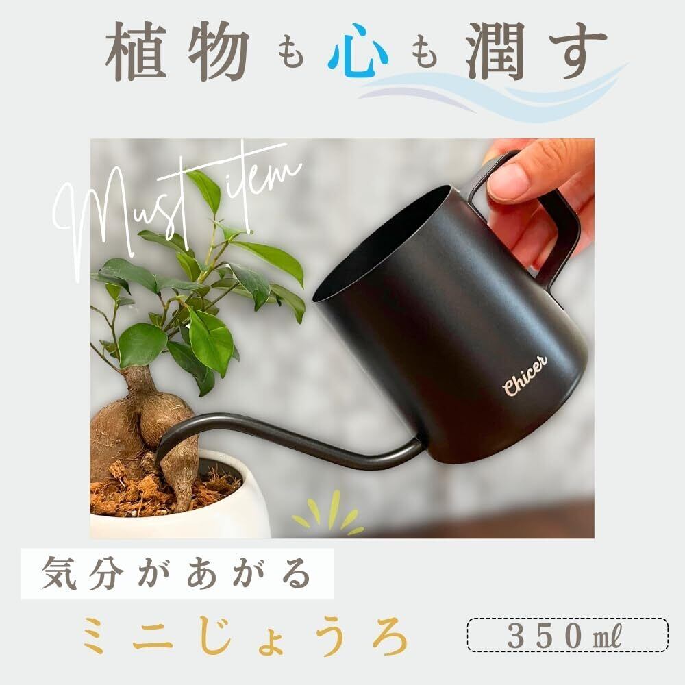 Chicer じょうろ おしゃれ 小型 ステンレス 軽量 かわいい 観葉植物 室内 ガーデニング 水差し インテリア アンティーク 350ml ブラック