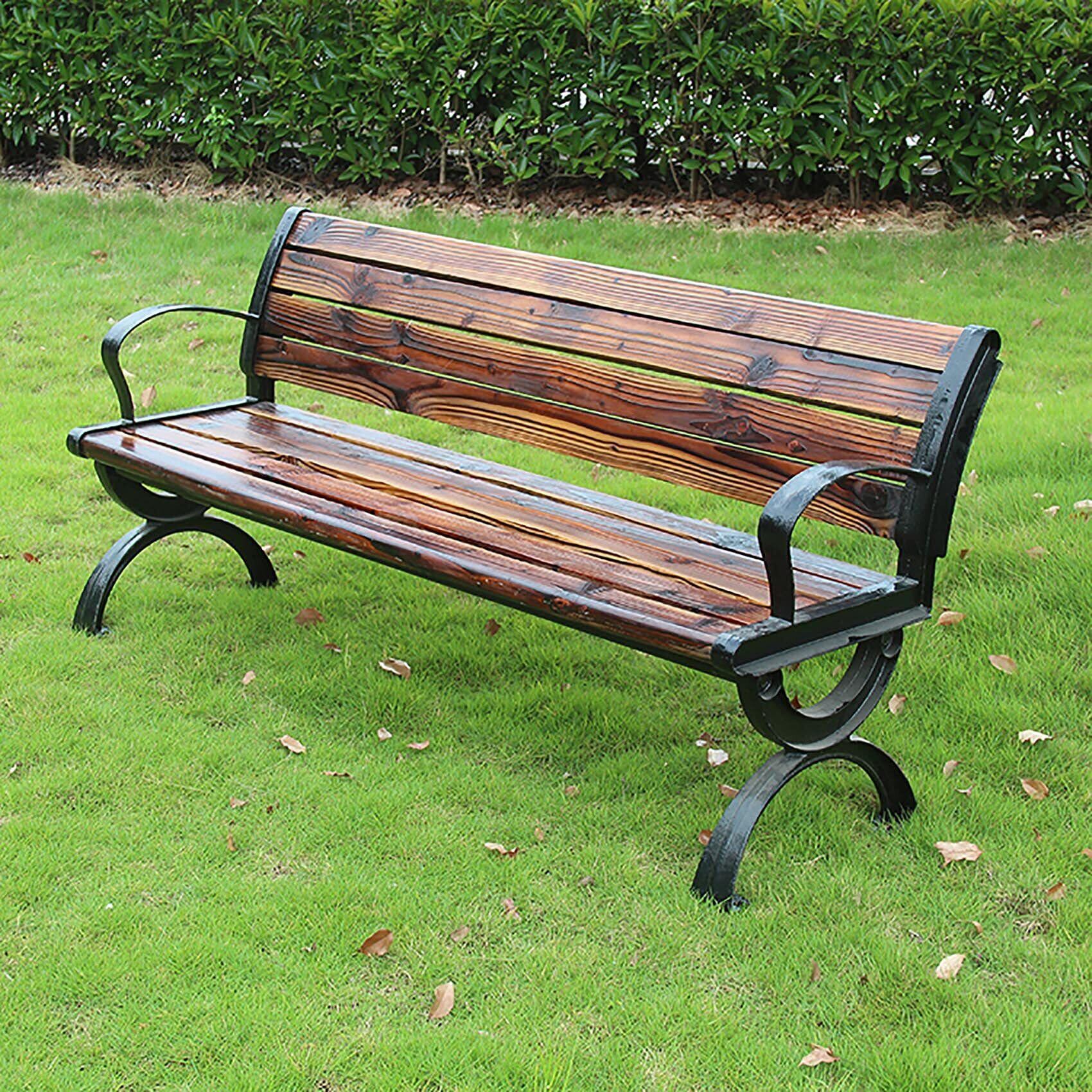 ガーデンベンチ 屋外用 幅170×奥行42×高さ39cm 耐日光性 耐荷重400kg 防食木材&防錆アルミ 足 アームレスト・背もたれ付き 中庭・庭園・ベランダに最適