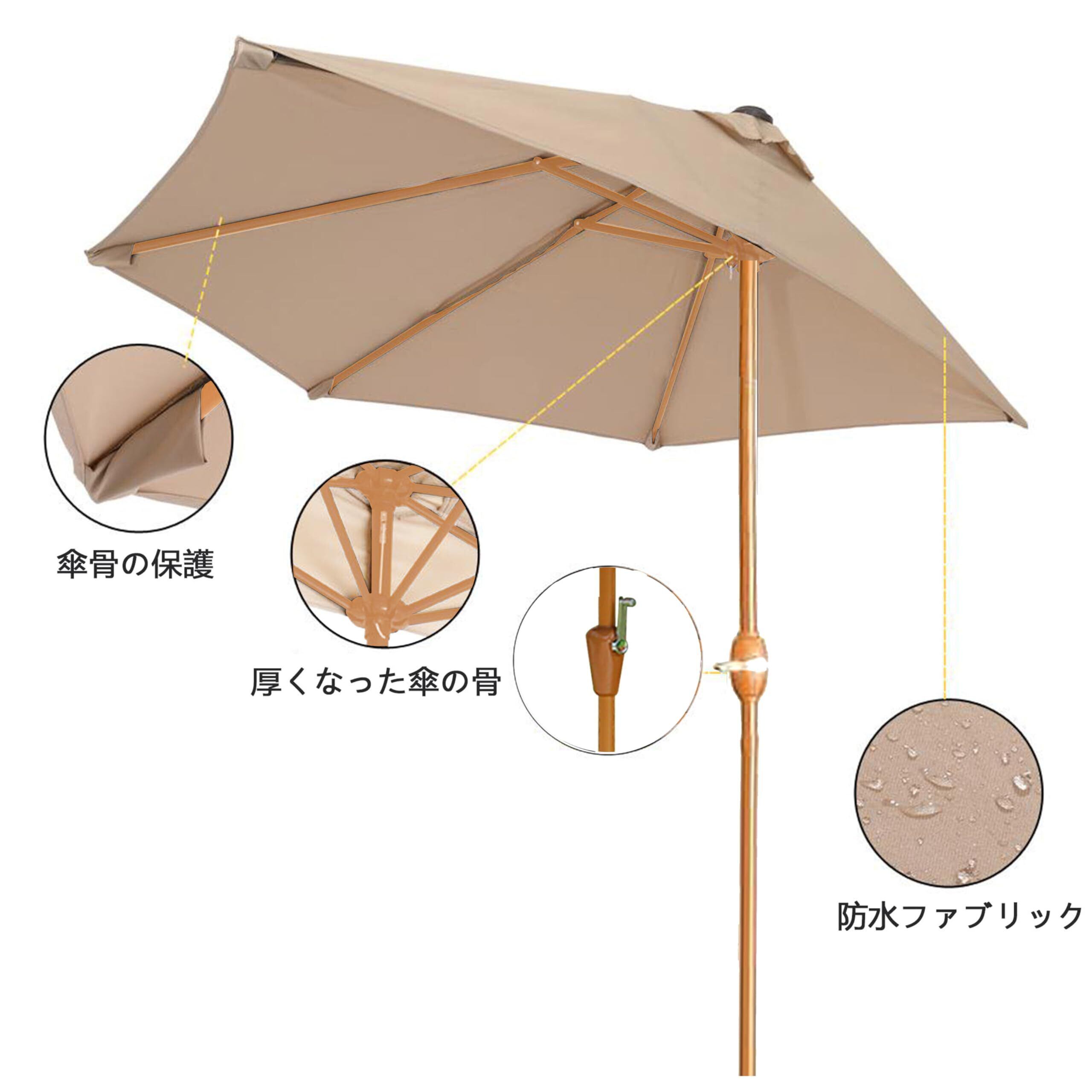 【高品質】パラソル表面は180gの高品質ポリエステル生地で、パラソルのフレームは鉄構造で丈夫で耐久性があります。