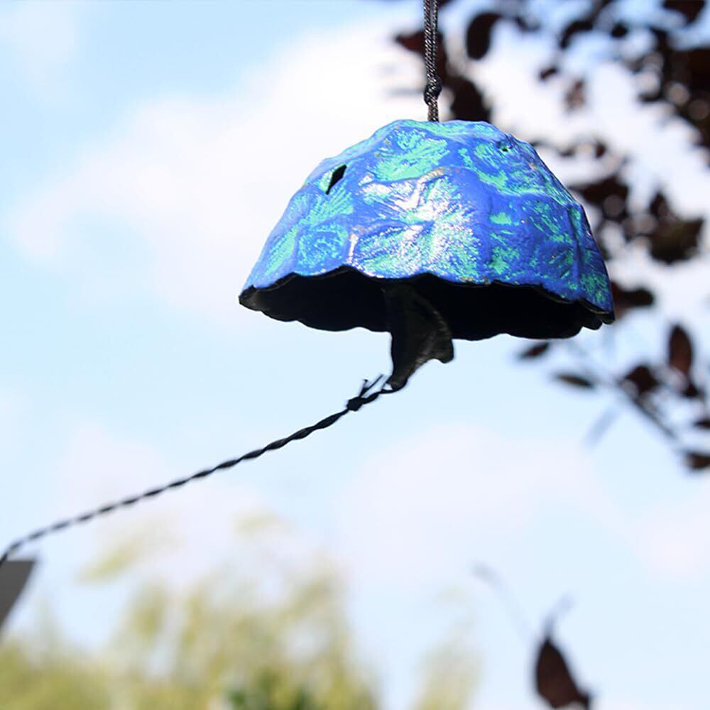 【鉄器の風鈴】当社の風鈴は、伝統的な鉄器を使用しています。職人の手作業による一つ一つの風鈴は、色合い、風合い、全てが美しい。細部までこだわり、昔ながらの懐かしい音色を奏でます。