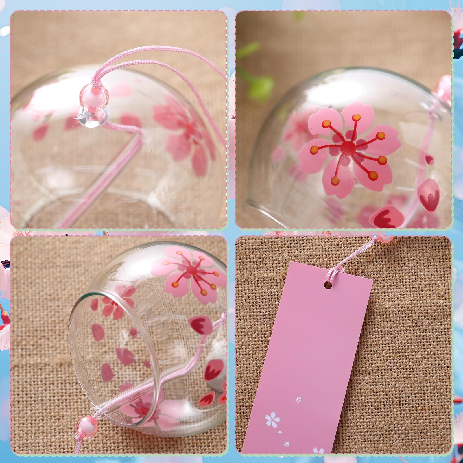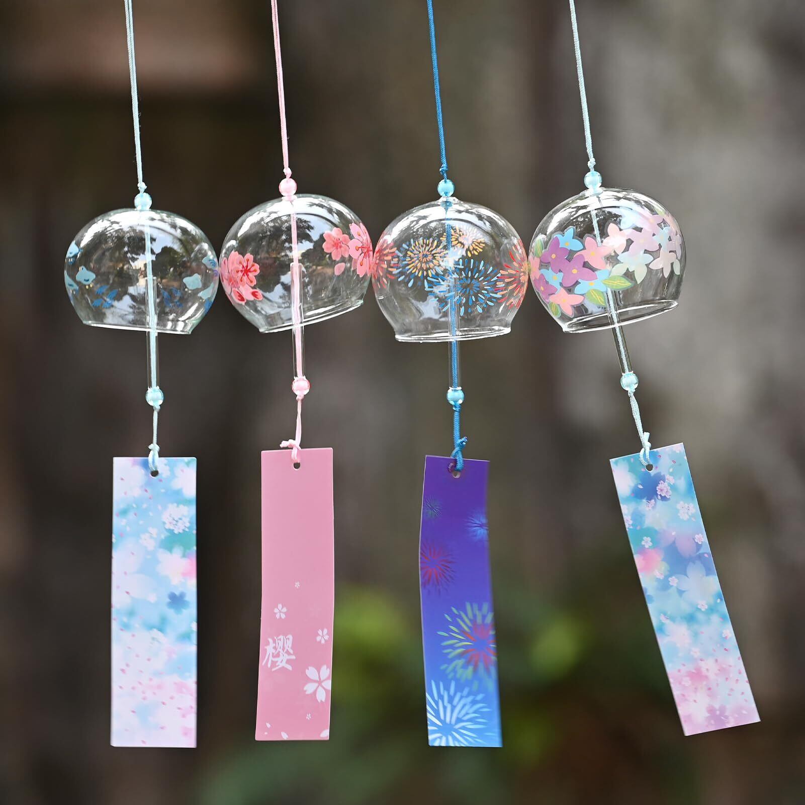 風鈴 手作り風鈴 ガラス風鈴 江戸風鈴 癒しの音 和風 涼しい感じ 夏の風物 涼を楽しむ おしゃれ インテリア 飾り物 雰囲気作り 吊り飾り 屋根飾り おみやげ 祝福 贈り物 2種セット ((花火+桜+三色の花+ひまわり)4個セット)
