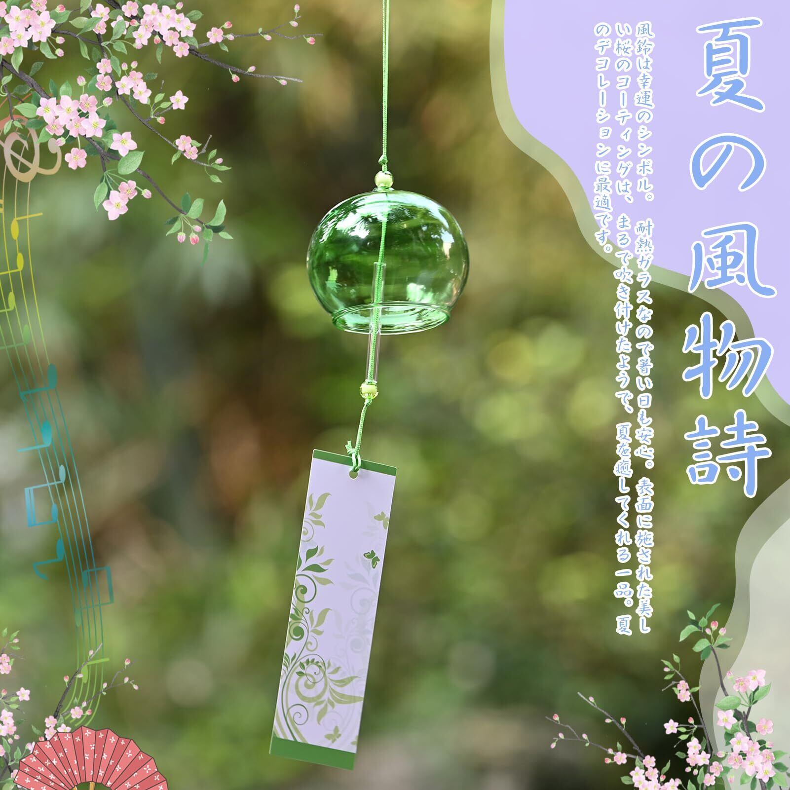 【製品仕様】メイン素材:高ホウケイ酸塩耐熱ガラスです。江戸時代の風鈴をイメージしたデザイン、手吹きガラスの風鈴です、精緻な手作り風鈴はきれいな花柄が描き込まれています。おしゃれな外観、色んなスタイル選択肢があり、夏の飾り物としてぴったりです!