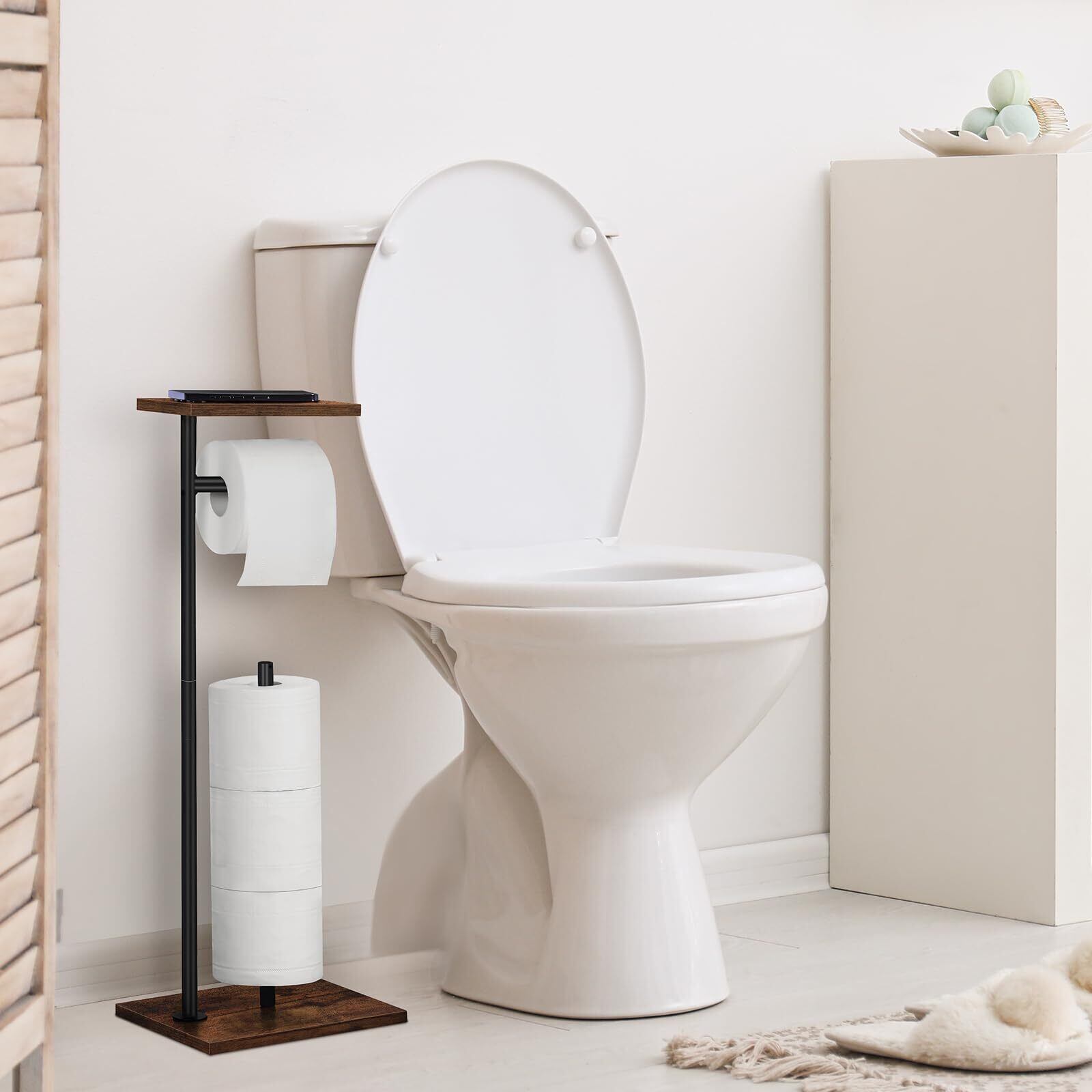 自立式トイレットペーパーホルダー トイレットペーパーホルダー 置き型トイレットペーパースタンド ティッシュホルダー ペーパーホルダー ペーパーホルダースタンド 金属ホルダー 木製棚付き キッチンペーパーホルダー トイレ 収納 ラック
