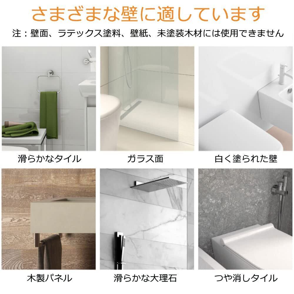 【吸着範囲】:タイル、ガラス、金属、プラスチック、冷蔵庫、洗濯機、キャビネットなどの電化製品を含む滑らかな平らな表面に取り付けます(タイルに隙間や質感があってはなりません)。木製の板面、湾曲面、モルタル、ビニールなどの壁面などの凹部には適用できません。 お風呂やトイレなど釘の使えない場所に吸盤で付けられる簡易式の取っ手です