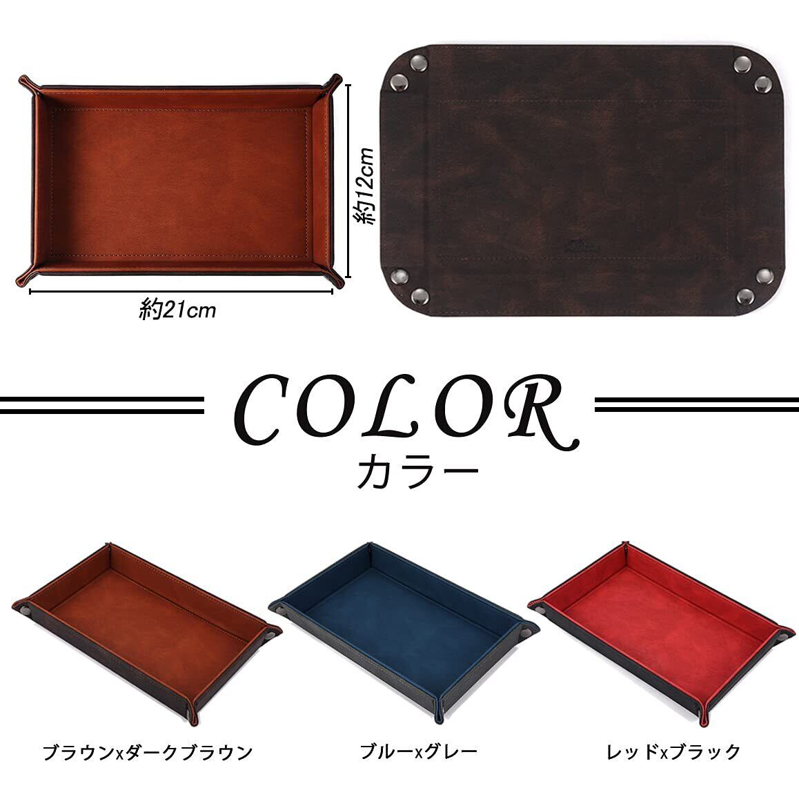 レザートレイ 小物入れ アクセサリートレイ 小物トレー 折り畳み式 こものいれ ボックス 腕時計 鍵 スマホ メガネ アクセサリー リモコン 収納ボックス おしゃれ 携帯便利 Mサイズ (ダークブラウン×ブラウン)