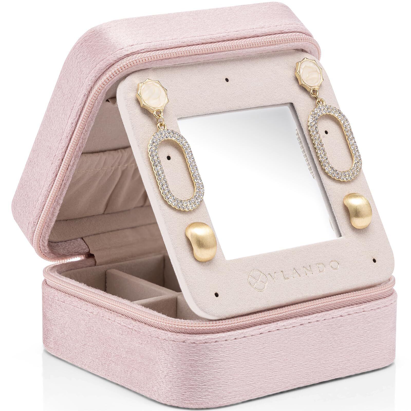 Vlando 誕生日プレゼント 女性 名前入り イニシャル ギフト アクセサリーケース 携帯用 鏡付き ジュエリーボックス トラベル かわいい 母の日 記念日 バレンタイン 結婚式 送別 退職 祝い 贈り物(ピンクN) | 毎日発送✿はなまる