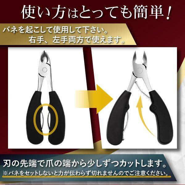 グレードアップしたワンランク上の特殊カーブ形状で、巻き爪・固い爪専用なので切れます。