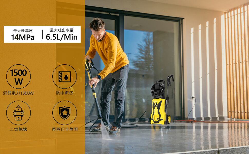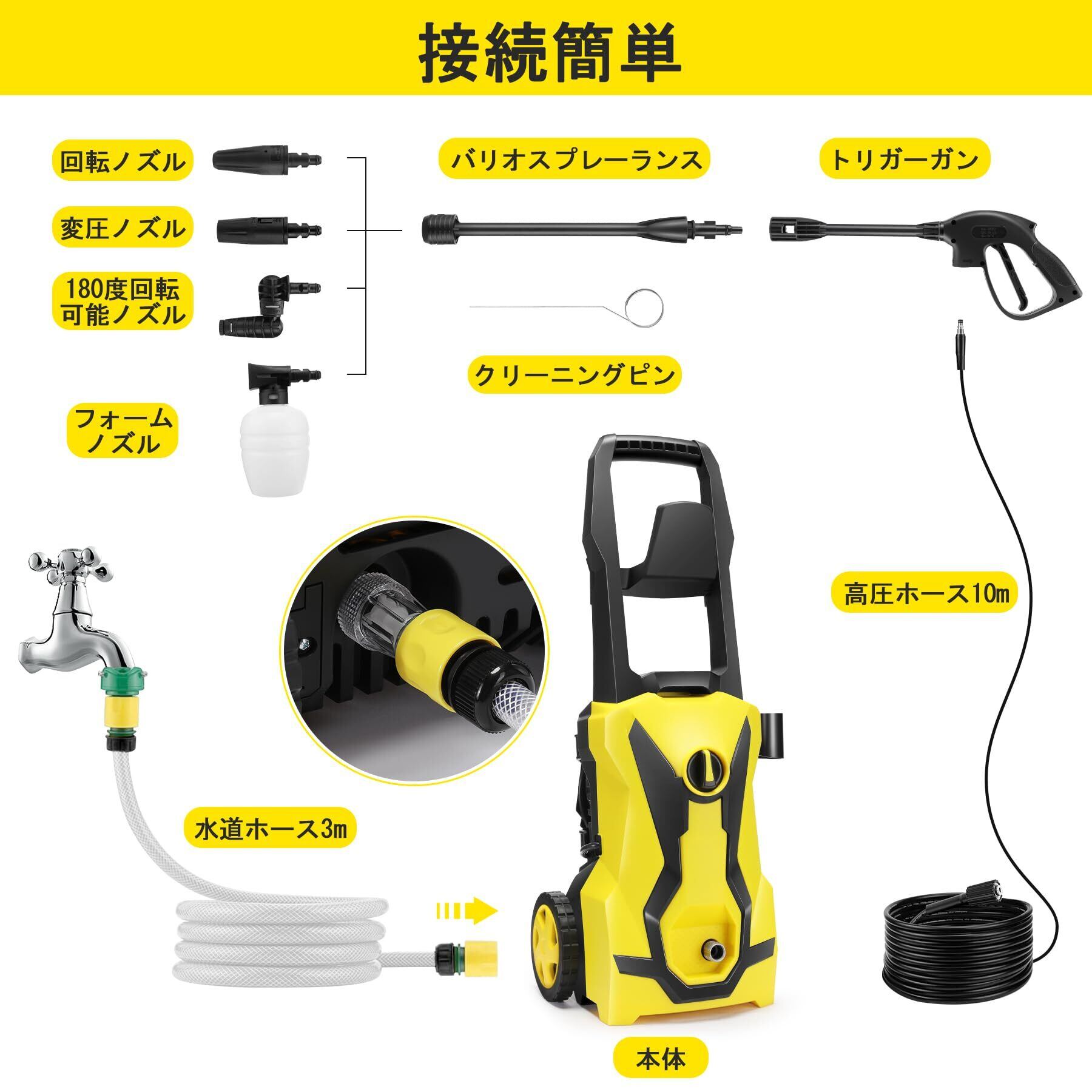 COOCHEER 2025新登場強化版 高圧洗浄機 1500W 最大吐出圧力14MPa 50Hz/60Hz東西日本兼用 水道直結・自吸両用 家庭用高圧クリーナー 高圧ホース10m+水道ホース3m+電源コード5m 高圧・低圧切替可能 省エネ 二重絶縁 IPX5防水 小型軽量 ポータブル 初心者向け 洗車 清掃 大掃除など 日本語説明書付【PSE認証済み】 | 毎日発送✿はなまる
