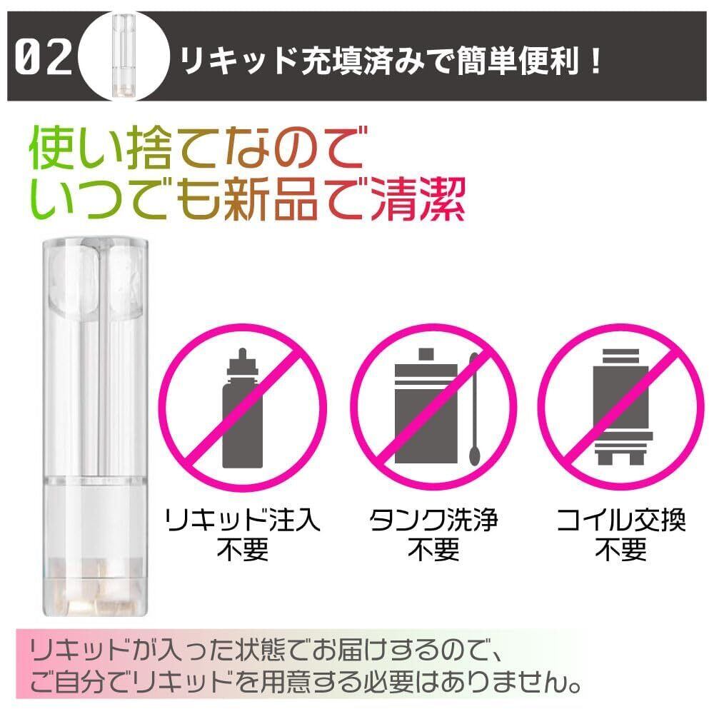 【コスパ最強互換カートリッジ】 カートリッジ1個あたりの吸引回数は250から350パフ。ひとつでたばこカプセル5個分をご使用いただけます。清潔な個包装になっているので鞄やポケットに忍ばせておけば外出先で急にカートリッジのリキッドが切れた時などにも対応できます。リキッドは充填済みなので、面倒なリキッド注入等は必要ありません。お手軽に、お得にプルームテックを楽しみたい方にピッタリです。