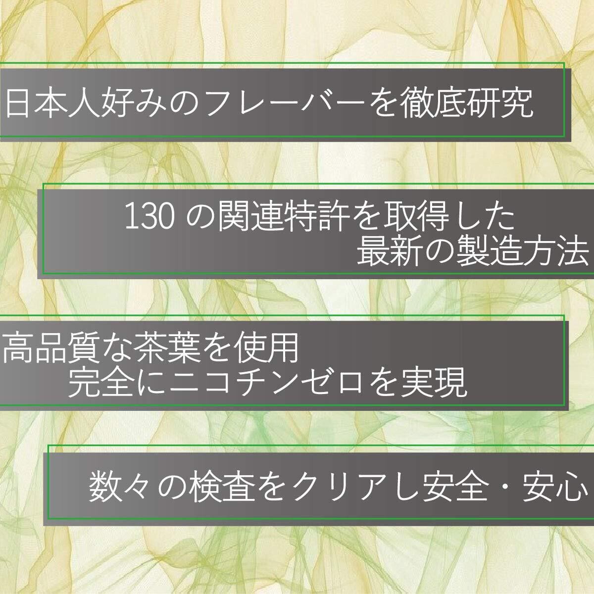 《ノンニコチンヒートスティックの決定版!》福建省の茶葉を使用し、従来のヒートスティックに比べて中の茶葉がこぼれにくく、ブレードから抜いた時の葉っぱ残りも防ぎます。ニコチン入り加熱式たばこを普段愛用している方も違和感なくお楽しみいただけるように調整いたしました。お手持ちの加熱式たばこのデバイスで簡単に吸うことができ、気軽にお試しいただけます。