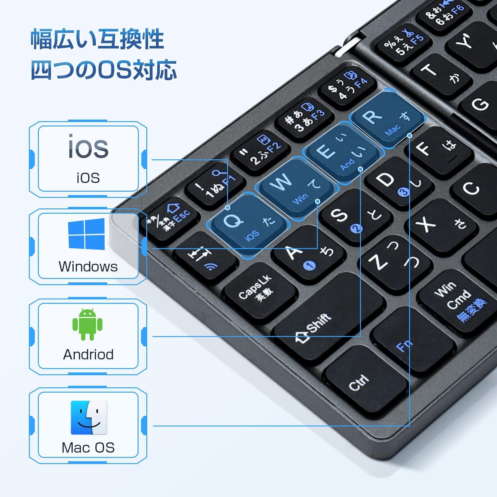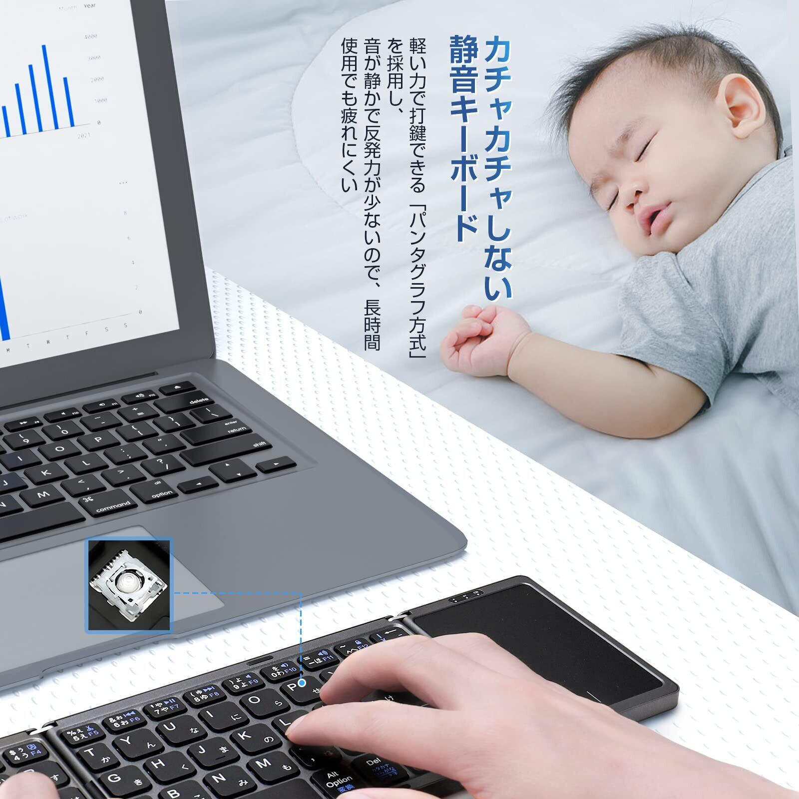 Ewin 新型 Bluetooth キーボード 折りたたみ ワイヤレス タッチパッド搭載 日本語配列 かな入力 3台デイバイス登録 ワンタッチ切替接続 Windows Mac iOS 対応 Type-C充電式 ブルートゥース キーボード iPad ノートPC パソコン タブレット スマホ用 日本語説明書付