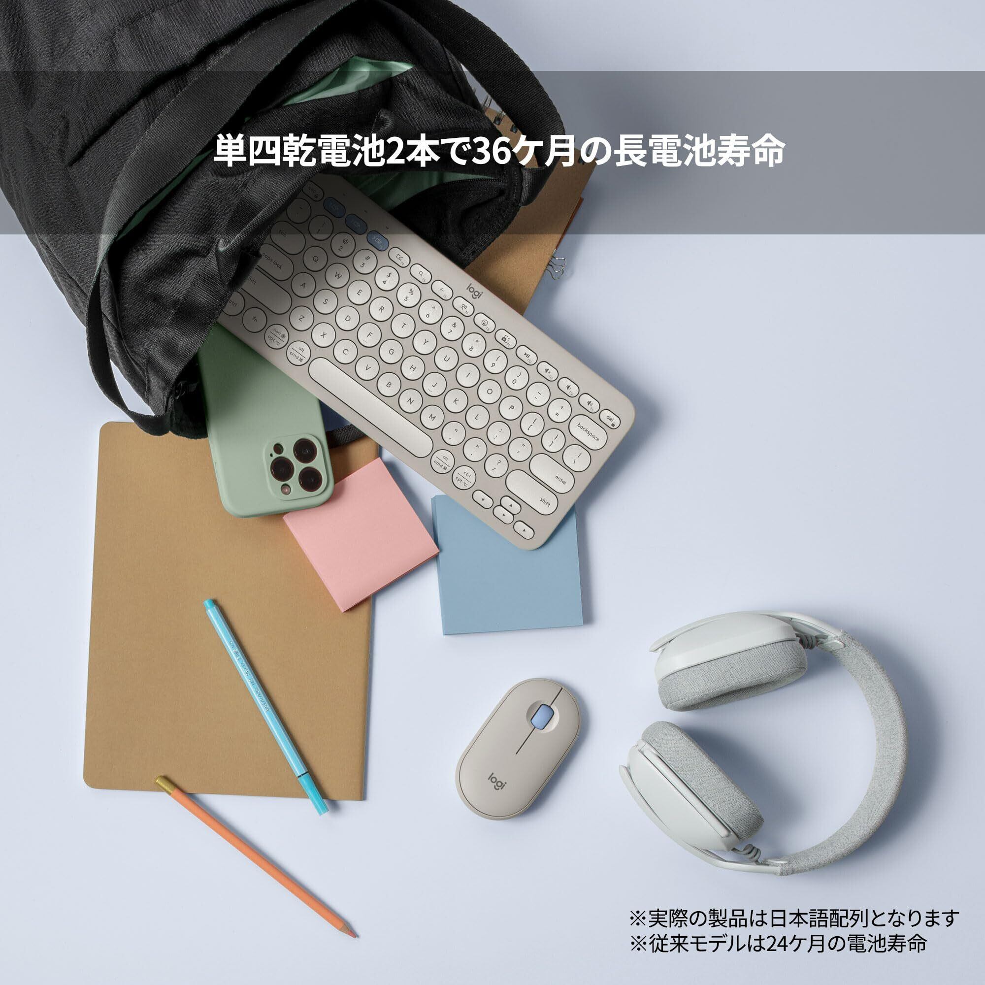 ロジクール ワイヤレスキーボード PEBBLE KEYS 2 K380sGY 薄型 軽量 415g 小型 Bluetooth Logi Bolt ワイヤレス 無線 キーボード Easy-Switch 日本語配列 電池寿命36ケ月 Windows Mac iPad iOS Android Chrome K380s グレージュ 国内正規品