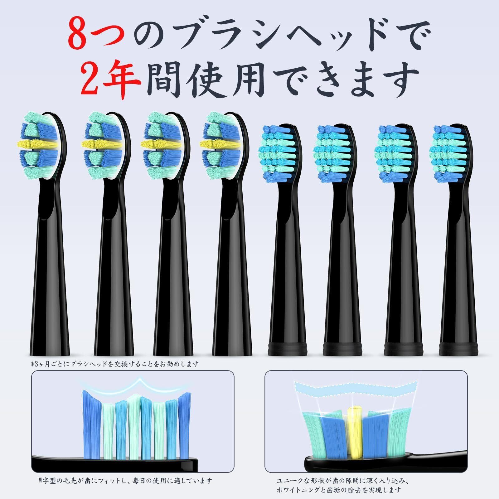 SEAGO 電動歯ブラシ ソニックケア 替えブラシ 8本 5つのモード 充電リマインダー USB充電式 4時間充電 30日間使用 メモリー機能 2分間のタイマー ホワイトニング ご家族へのギフト (5モード, ブラック) | 毎日発送✿はなまる