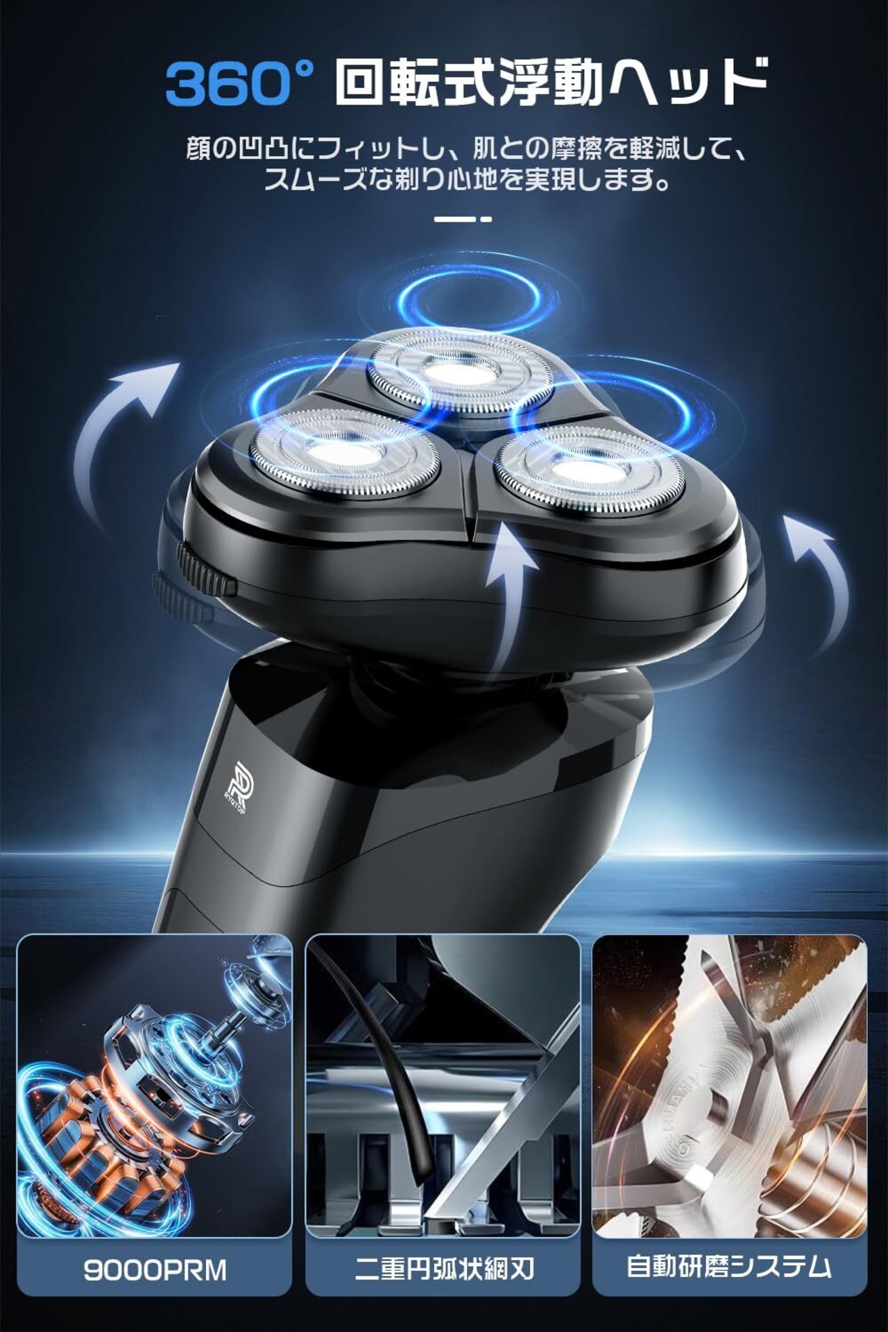 【2025新登場&回転式シェーバー】シェーバー メンズ 髭剃り 27枚刃 乾湿両用 ひげそり 360°回転式 電気シェーバー 低騒音 長持ちバッテリー 電動シェーバー ひげ剃り 深剃り IPX7防水 水洗い可 お風呂 type-c充電式 電気カミソリ 液晶画面 LCD残量表示 軽量 持ち運び便利 男性用 出張/旅行/車内常備/プレゼント 日本語取扱説明書付