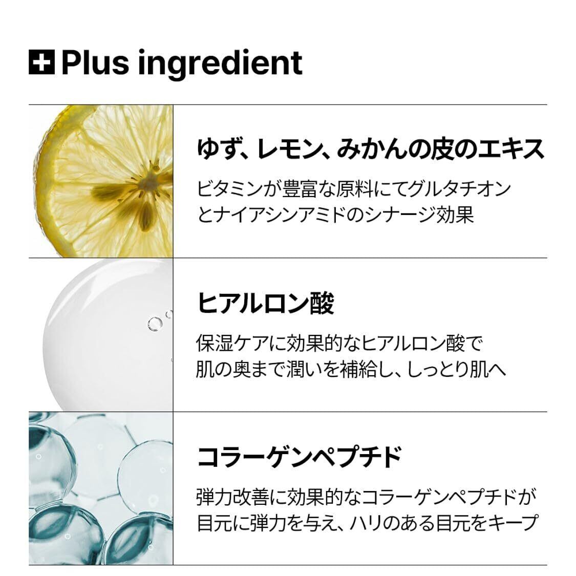 【全成分】水、グリセリン、ナイアシンアミド、塩化K、BG、1,2-ヘキサンジオール、グルコマンナン、トチャカ、ペンチレングリコール、ローカストビーンガム、キサンタンガム、PEG-60水添ヒマシ油、カプリル酸グリセリル、アラントイン、ホウケイ酸(Ca/チタン)、パンテノール、エチルヘキシルグリセリン、アデノシン、デキストリン、EDTA-2Na、ヒドロキシエチルセルロース、DPG、香料、リン酸アスコルビルMg、ユズ果実エキス、フェルラ酸、酸化スズ、パルミチン酸レチノール、ウンシュウミカン果皮エキス、レモン果実エキス、カニナバラ葉エキス、加水分解コラーゲン、ピーナッツ油、グルタチオン、ダイヤモンド末、ヒアルロン酸Na、トコフェロール、アセチルヘキサペプチド-8、酸化チタン