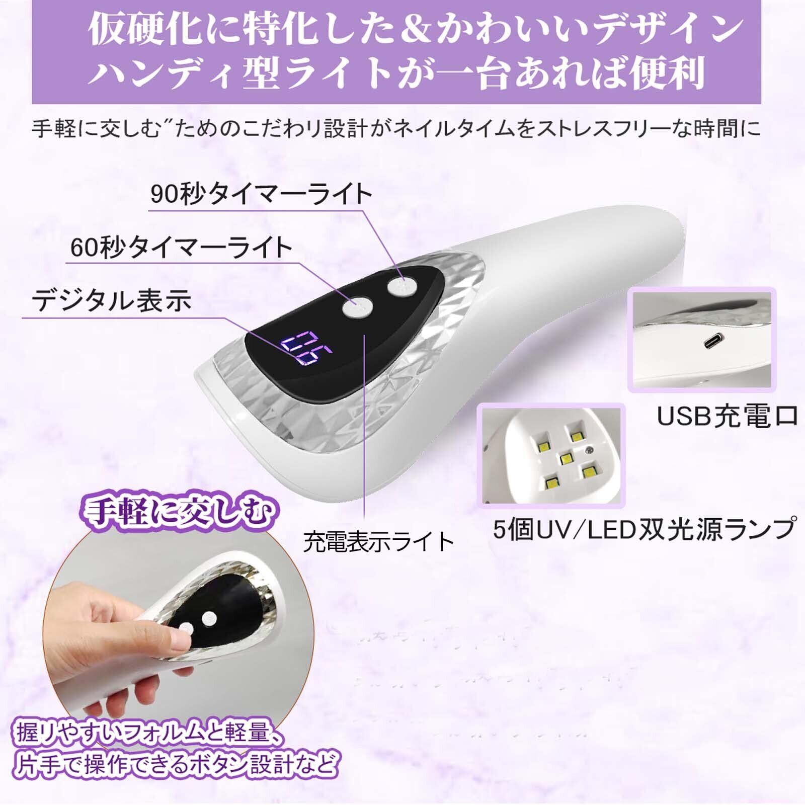 【ギフトとして&1年】UVレジンライトは携帯型なので、お友達の旅のためにも特に適しています。また、ほぼすべてのジェルに対応!自宅でマニキュア用、サロンにもお使い頂けます。最高の状態をキープして、仮硬化を手軽に手元で、ハンディ型ライトです。コンパクトとかわいいデザインので、お友達や大切な方へのプレゼントとしてもオススメです!全ての製造品質につき、購入日より安心のメーカー1年間!初めての方でもすぐ使えるようになる分かりやすい日本語説明書付き、さらにお使用方法を詳しく紹介する。当店自慢のアフターサービス、不良な状況がありましたら、返金と返品ができます!きちんとサポートさせて頂きます。