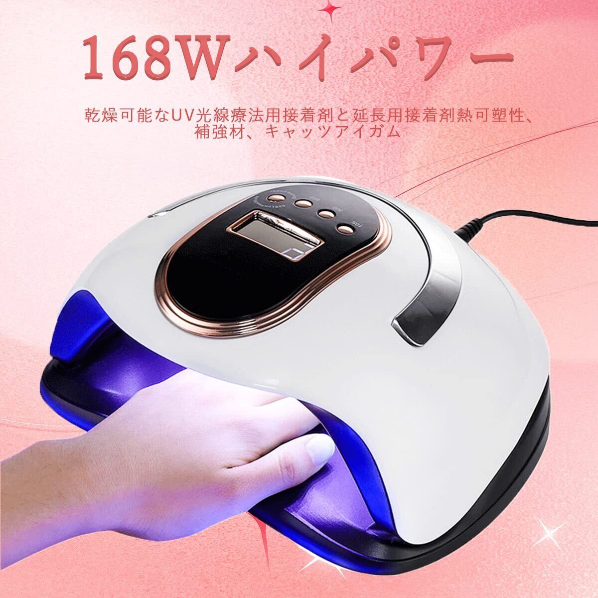エルエンスタジオ ジェル硬化ライト LEDUVネイルライト 硬化用UVライト レジン用 自動感知センサー付き168Wネイルドライヤー 4段階タイマー 無痛低ヒート機能付き 液晶ディスプレー搭載 全ジェル対応 | 毎日発送✿はなまる