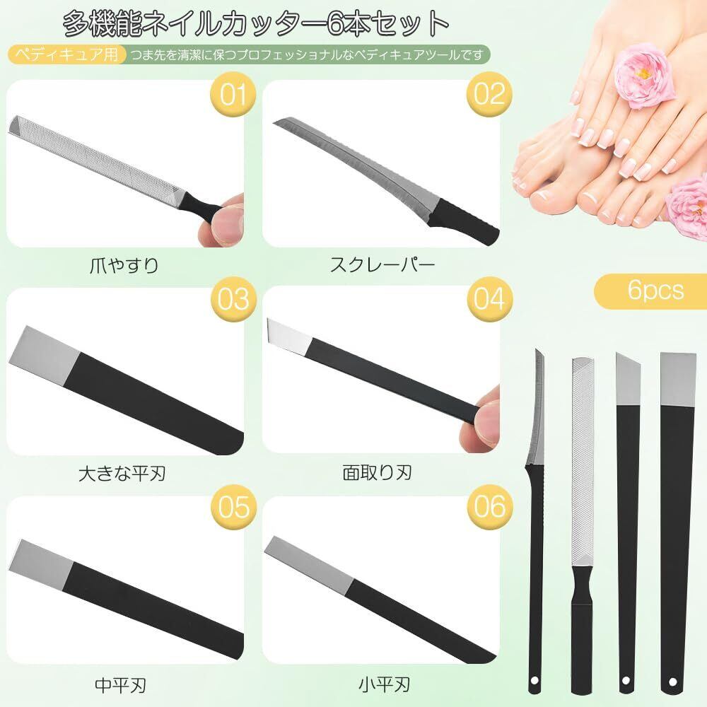 ペディキュアナイフ 6点セット ペディキュアキット 足切りナイフ 様々なスタイル 刃ナイフセット ネイルケア 足爪のお手入れ 多機能ペディキュアナイフ 甘皮切り/巻き爪/厚くて硬い爪/角質の角質 実用的なデザイン 携帯便利 男女兼用 収納袋付き | 毎日発送✿はなまる