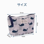 【可愛いデザイン】くじらなどのキャラクターで満ち溢れた可愛いデザインの化粧ポーチ。裏地には異なる絵柄がある上、チャームもかわいくておしゃれです。