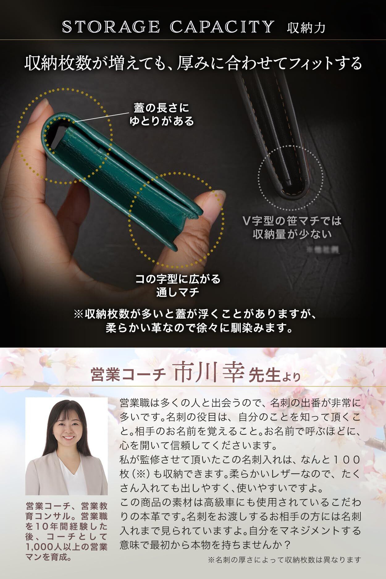 【特徴】「営業職に贈る大容量名刺入れ」は、これまでに1000人以上の営業職を育成してこられた、営業コーチの市川先生に監修して頂きました。化粧箱付属でギフトラッピングにも対応しているので、ギフトに最適!