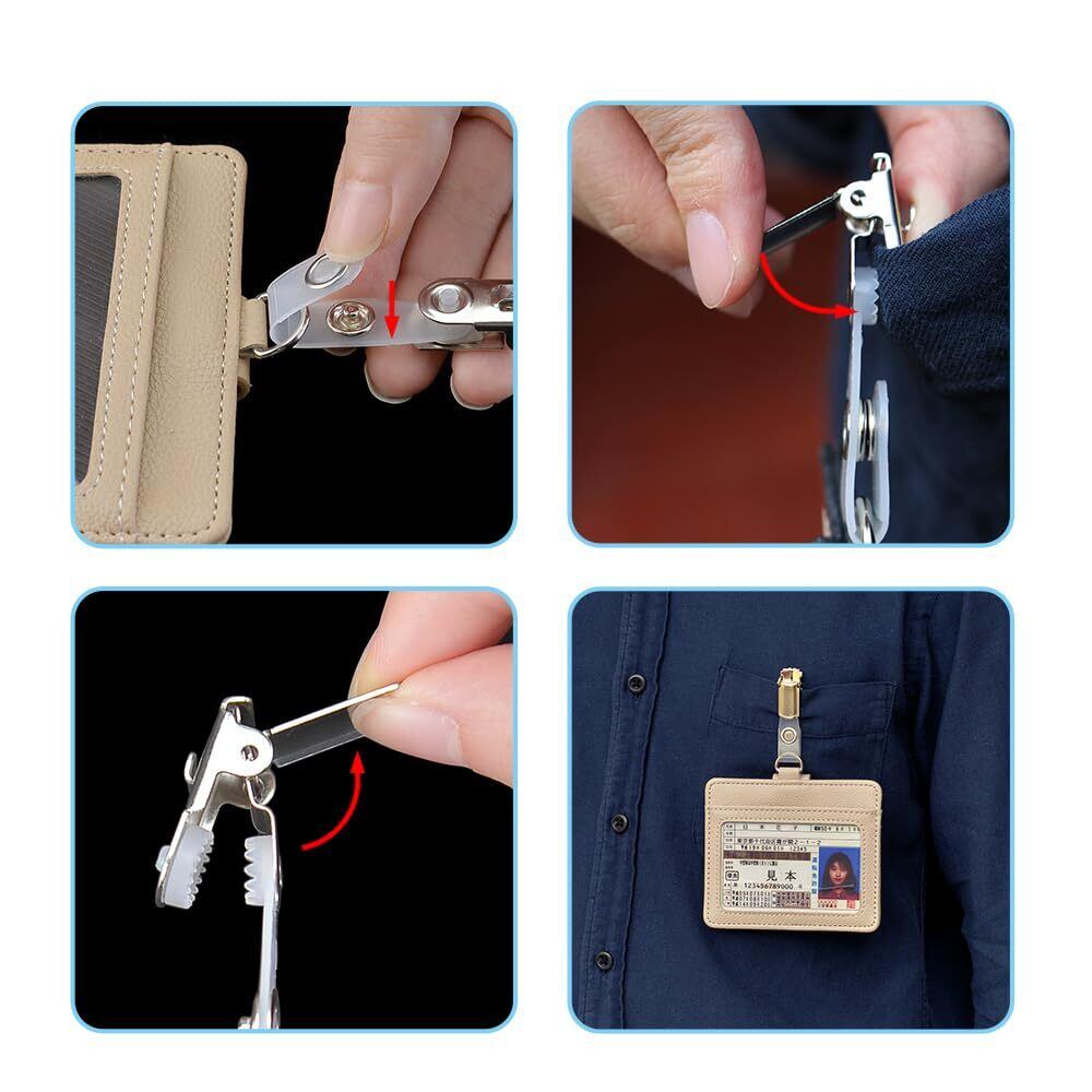 【利便性】ネックストラップ部とホルダー部を軽量の素材で作り込み驚異の47gという超軽量設計に致しました。長時間の使用を想定しておりますので、一層肌触りの優しい柔らかい革をネックストラップに使っております。朝から晩まで付けていても疲れにくくしております。ネックストラップを外せば、パスケースやカードケースとしても使えます。フフック式なので、取り外すことが便利で、自然に落ちにくい。普段はわざと気を付ける必要はなく、安心に使用できます。フックは360℃回転ですから、ネームストラップは捻じにくいです。ビジネスシーンによりネックストラップタイプと胸ポケットクリップタイプと切り替えが出来るように、クリップを付属致しました、バッグや胸ポケットやベルトなどに飾ることができます。落ち着いた色合い、どのような色の服でも主張しすぎず合わせやすいです。見た目も上品で清潔感を感じられ、好印象が与えられるのもポイントです!