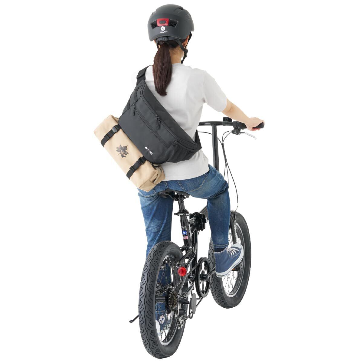 斜めがけバッグとしてはもちろん、ウエストバッグとしても使用可能です。自転車通勤やサイクリングなどアウトドアシーンにも重宝します。バッグ底部には、荷物の外付けができるベルトを搭載。バゲットチェアや薄手の上着を取り付けることができ、自転車通勤やサイクリングなどアウトドアシーンにも重宝します。