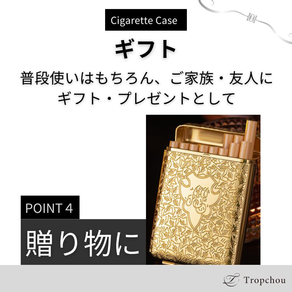 【スリムでシンプルな使いやすいデザイン】 落ち着いた色合いとデザインが魅力的なメタルタイプの煙草ケース。シンプルで品のあるデザインはカジュアルにもフォーマルにもぴったりです。スリム・コンパクトなので胸ポケットにもすっぽりと収まります。持ち運びに便利です。