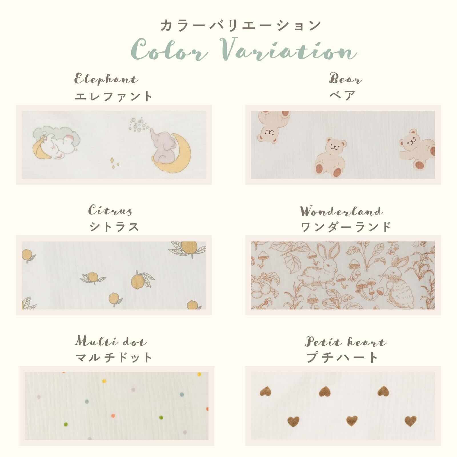 【持ち運びしやすいかわいいデザイン】tecopeco[テコぺコ]のおむつシーツは 「ワンダーランド」「ベア」「マルチドット」「プチハート」「エレファント」「シトラス」 と6種の柄があり、お好みのデザインがきっと見つかる! かわいいデザインだとかばんの中に入っていても違和感がなく持ち運びもしやすい