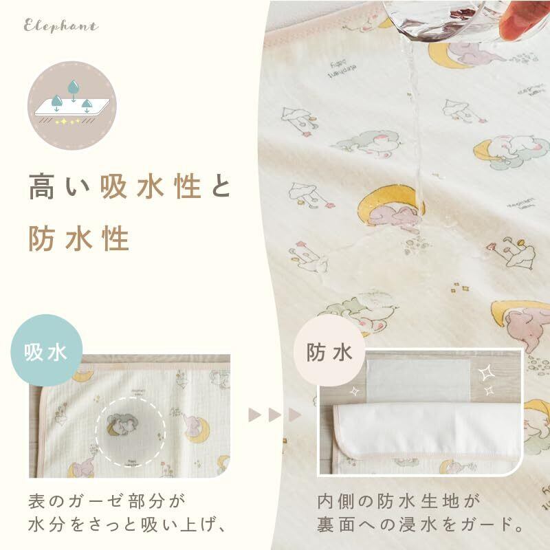 【オムツ台にもぴったり!】 おむつ替えシート 選べる6種デザイン 洗濯機OK オーガニックコットン 70×50cm 吸水 防水シーツ ベビー おむつかえマット 持ち運び 軽量 コンパクト [tecopeco テコペコ](エレファント)