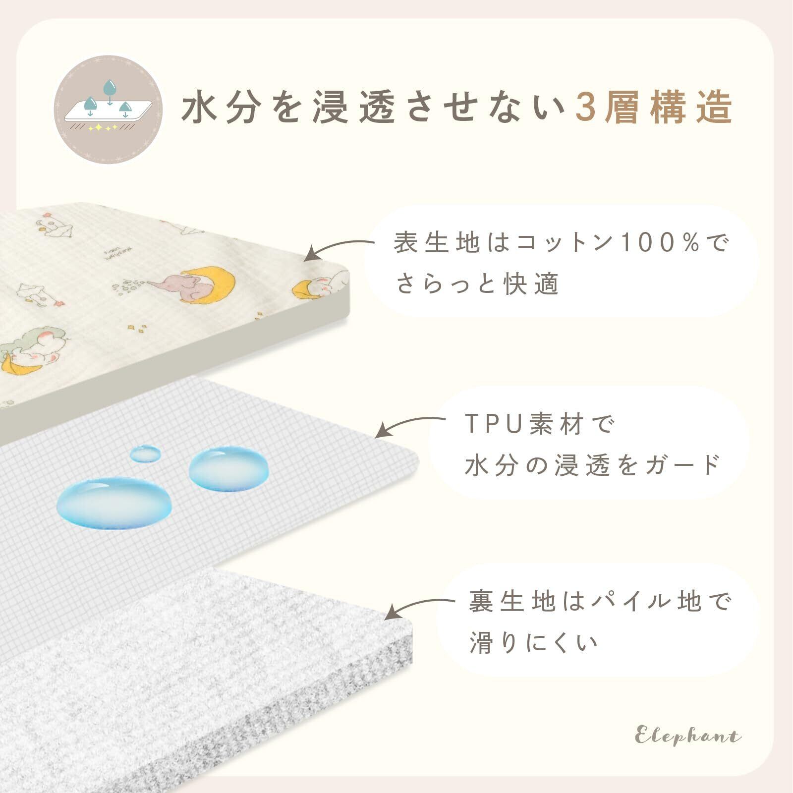 【オムツ台にもぴったり!】 おむつ替えシート 選べる6種デザイン 洗濯機OK オーガニックコットン 70×50cm 吸水 防水シーツ ベビー おむつかえマット 持ち運び 軽量 コンパクト [tecopeco テコペコ](エレファント) | 毎日発送✿はなまる