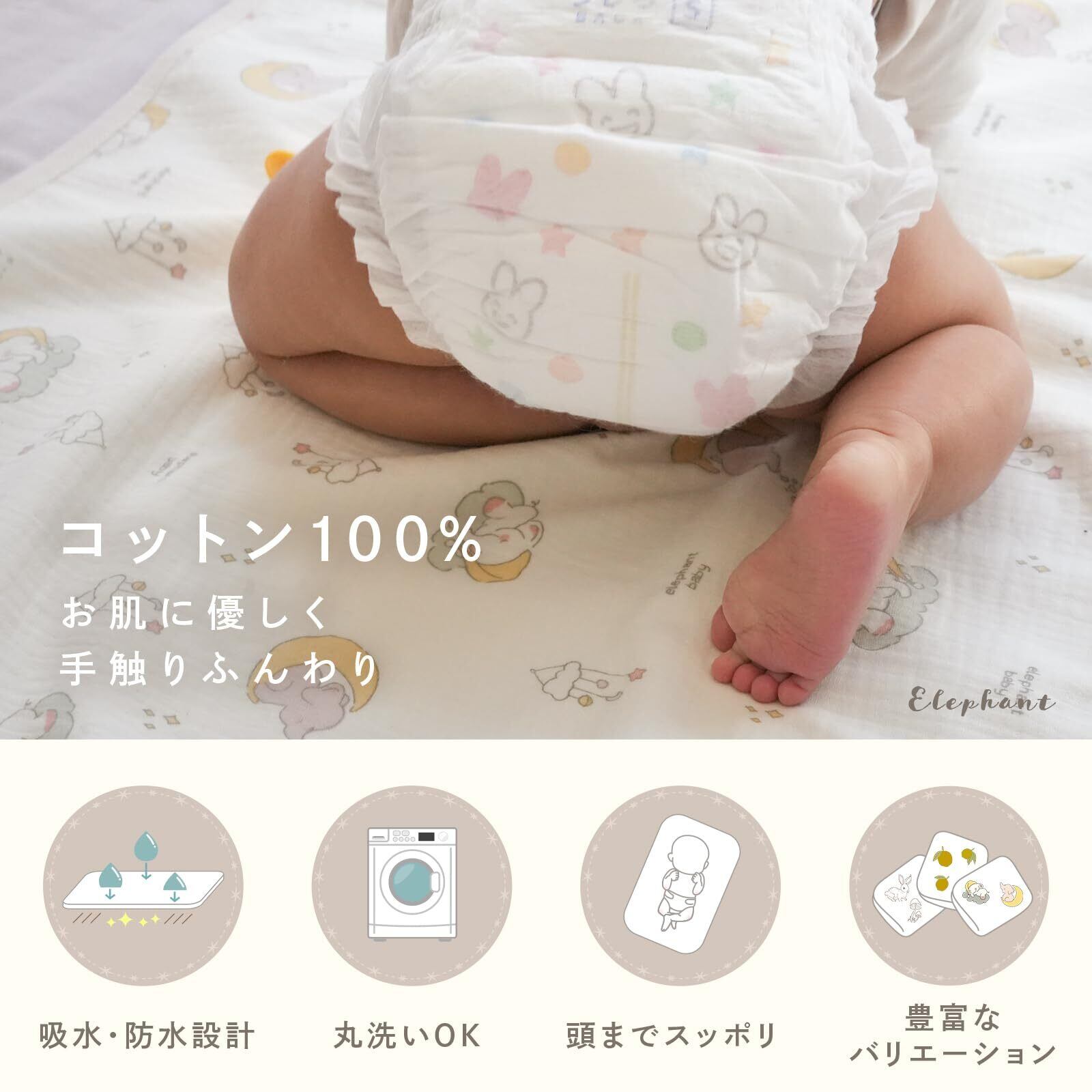 【優しいコットン素材】お肌に優しくふんわりとフィットするコットン100%を使用 吸水性抜群、丸洗いOKとコットン素材には嬉しいポイントがたくさん お肌が敏感な赤ちゃんも心配することなくおむつ替えをしていただけます