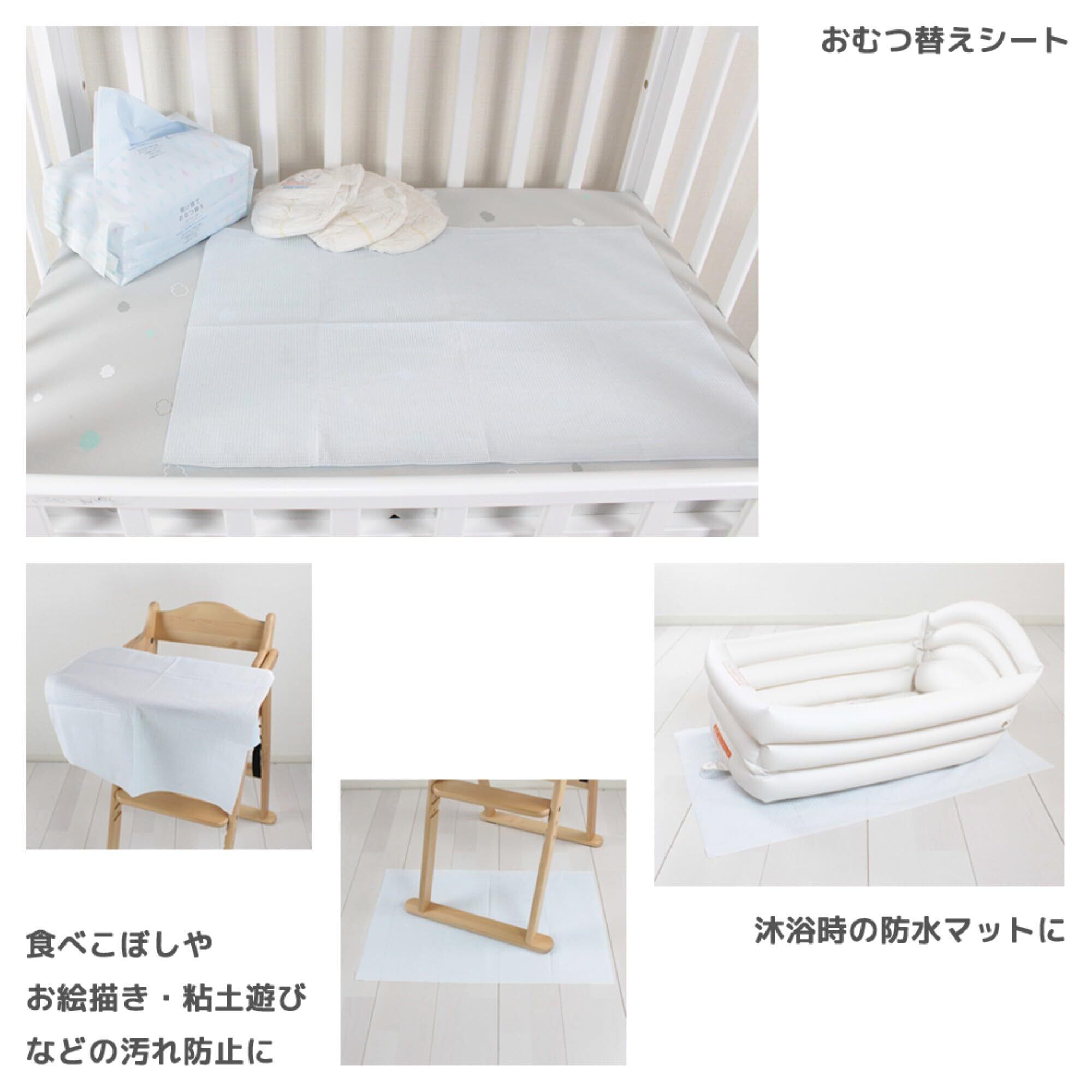 大判サイズで、赤ちゃんのおむつ替えやお食事の食べこぼしなどに使用できます。
