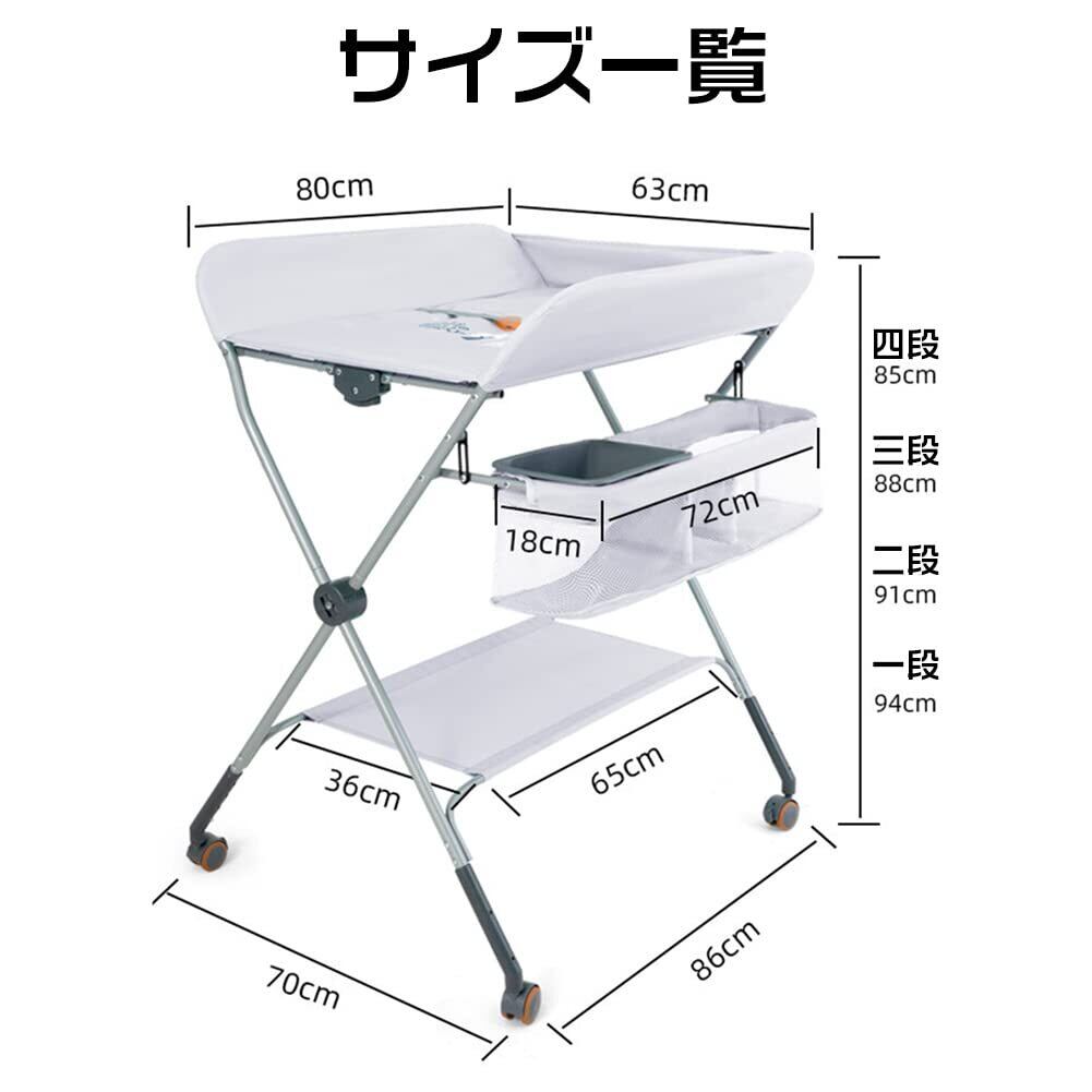 4-in-1多機能:物干しとしてもご利用可能;サイドと底部に収納スペースが2箇所あり、おむつ、タオル、その他のアクセサリーに簡単にアクセスでき;赤ちゃんと遊びもラクラク;べびーケアがオススメです!