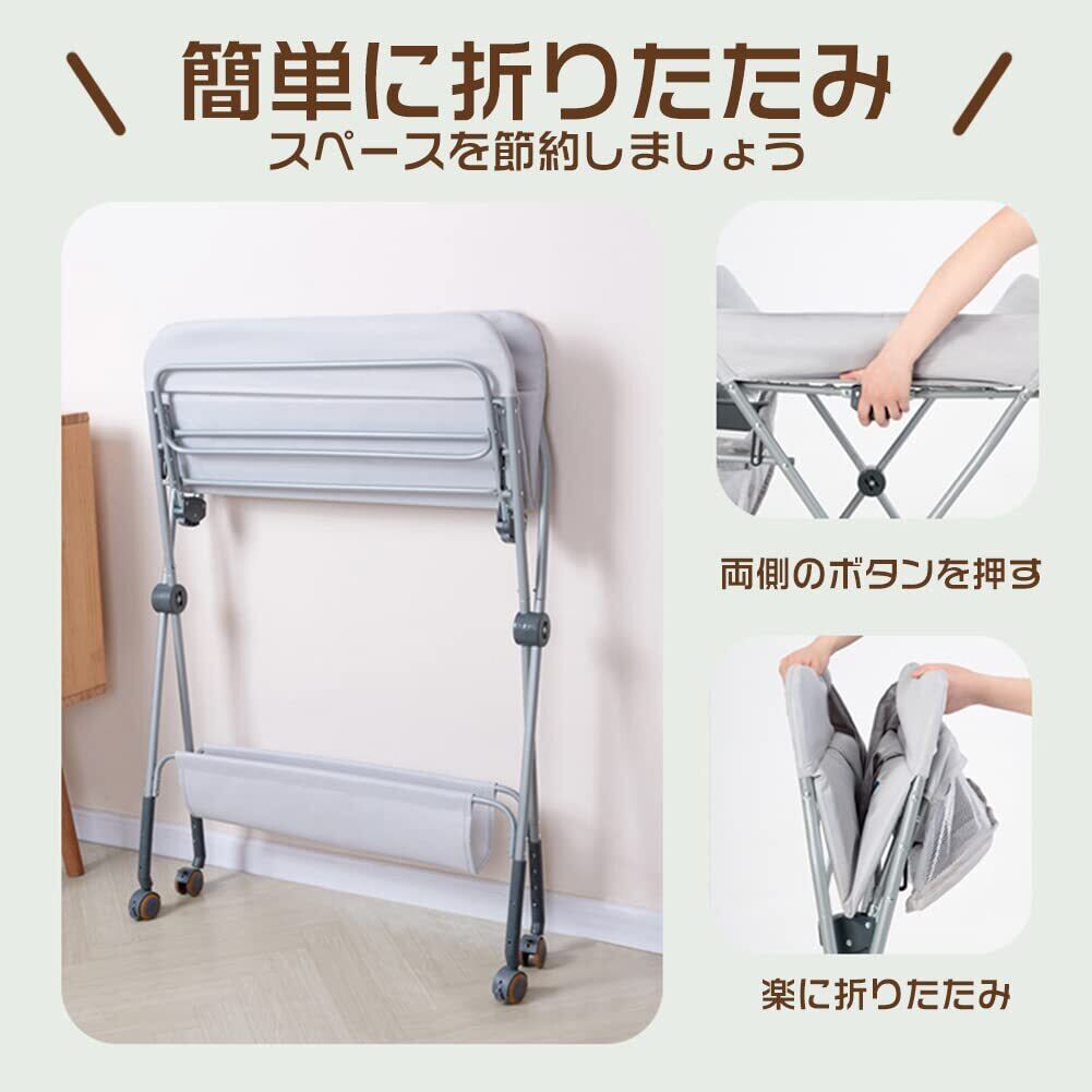 Artispro おむつ交換台 オムツ換え ベビーケア 折りたたみ 高さ調節 ベビーベッド 育児用 おむつテーブル ポータブル収納便利 おむつ取替テーブル 安全ベルト サイドラック 収納棚 キャスター付き | 毎日発送✿はなまる