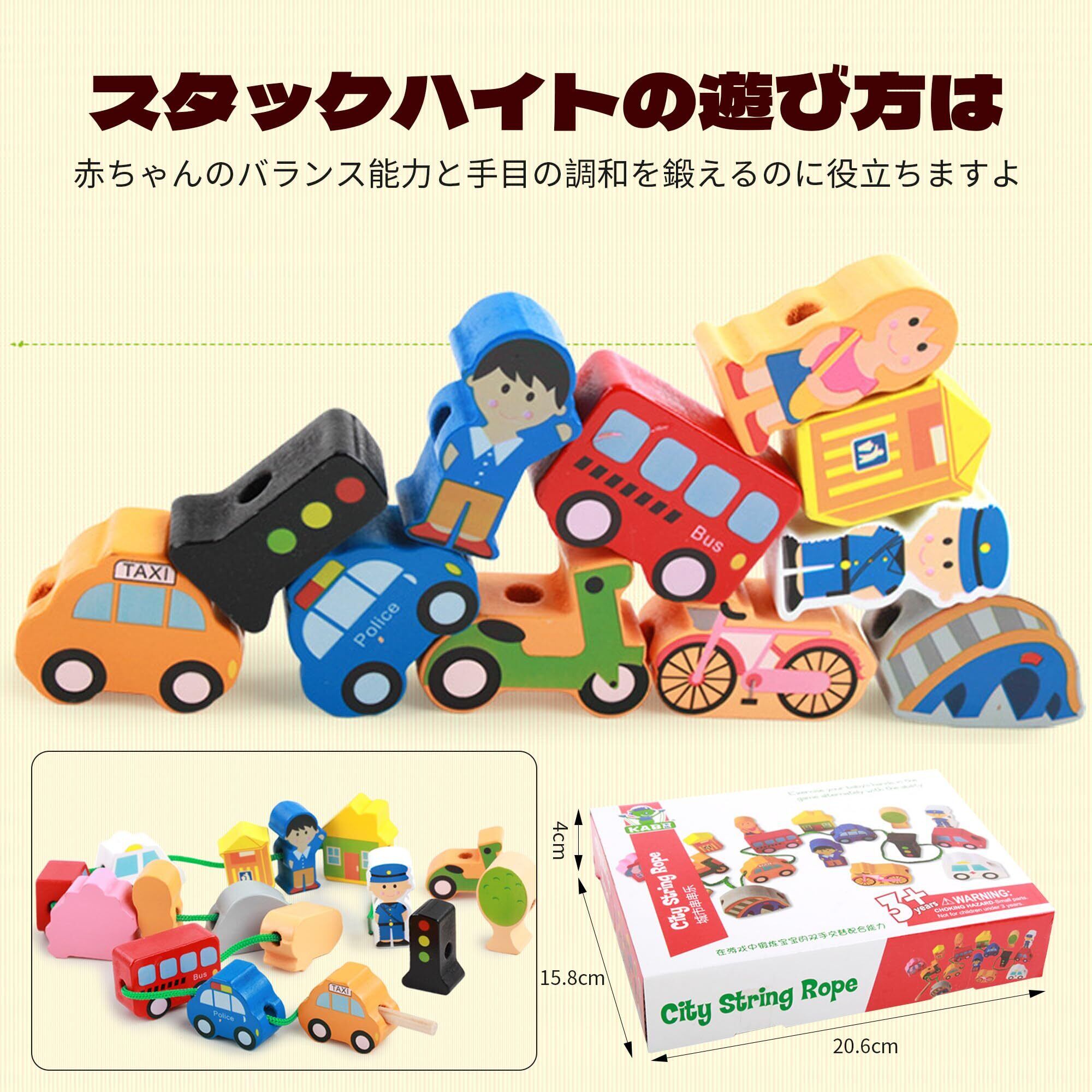 AAGWW 紐通し おもちゃ モンテッソーリ 玩具 ひもを通すおもちゃ 子供 木製 ビーズ 指先トレーニング 安全 プレゼント(都市シリーズ)