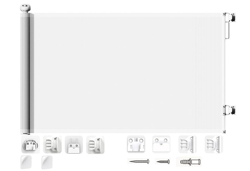 DUOGIO ベビーゲート ロール式 ベビーフェンス 幅140CM(ドア横幅0.8M/1.2M兼用) 巻き取り式 ベビーゲート 階段上 ペットゲート 高86CM ネジと両面テープ付 穴開けない取付可 階段ゲート メッシュ布式ドア柵 格納式 ペットフェンス バリアフリー 脫走防止ゲート 安全ロック機能 タイル・木製・ガラス・金属壁取付可 赤ちゃん/ペット/猫/犬に適応 ホワイト | 毎日発送✿はなまる
