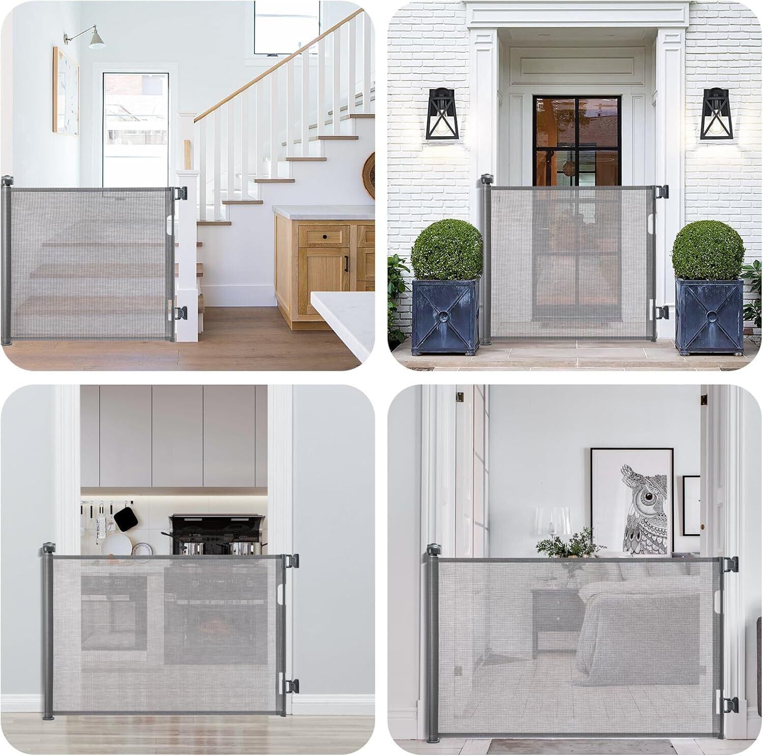 ベビーゲート ロール 巻き取り 安全ゲート 階段上 取付幅150cmまで 犬 猫 猫脱走防止フェンス 高さ86cm (グレー, 150cm)