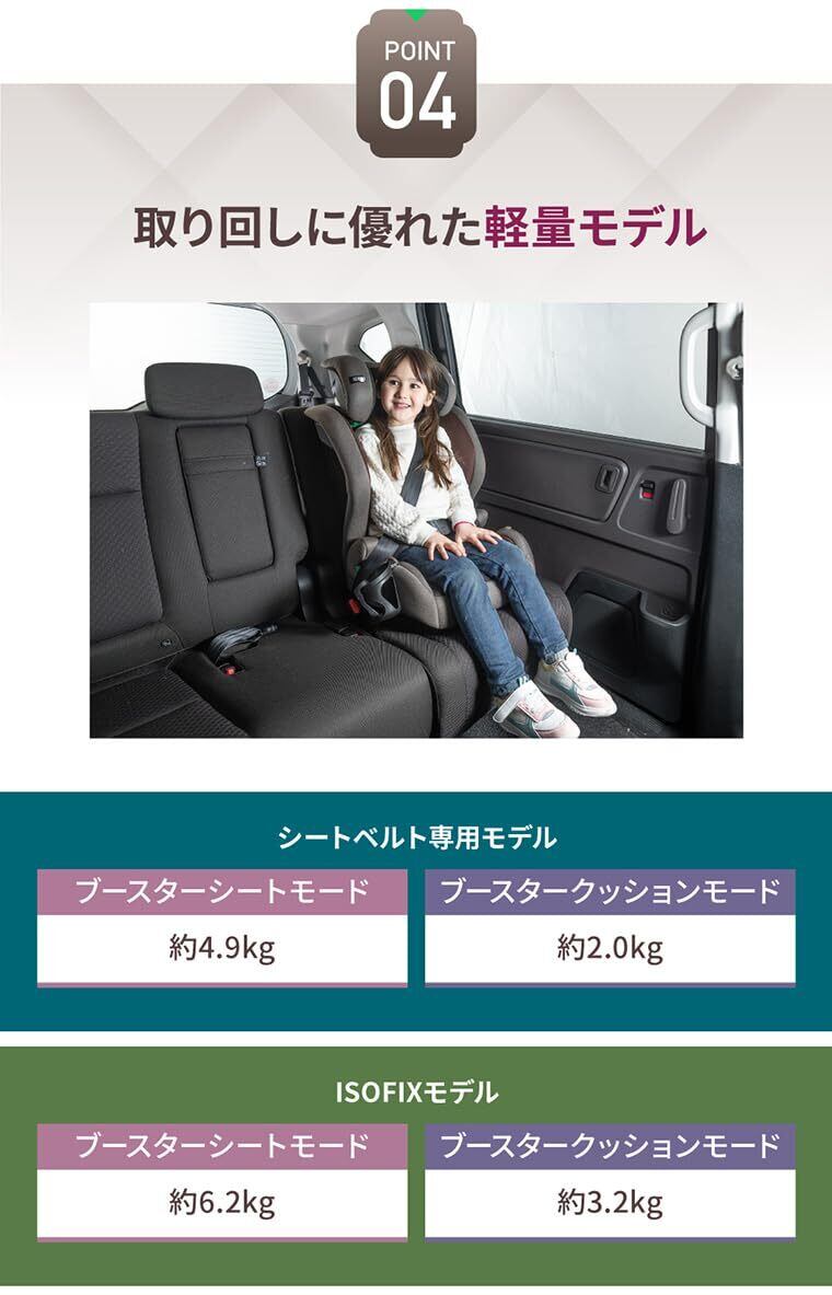 選べる2タイプ。シートベルト固定モデルとISOFIX固定モデル