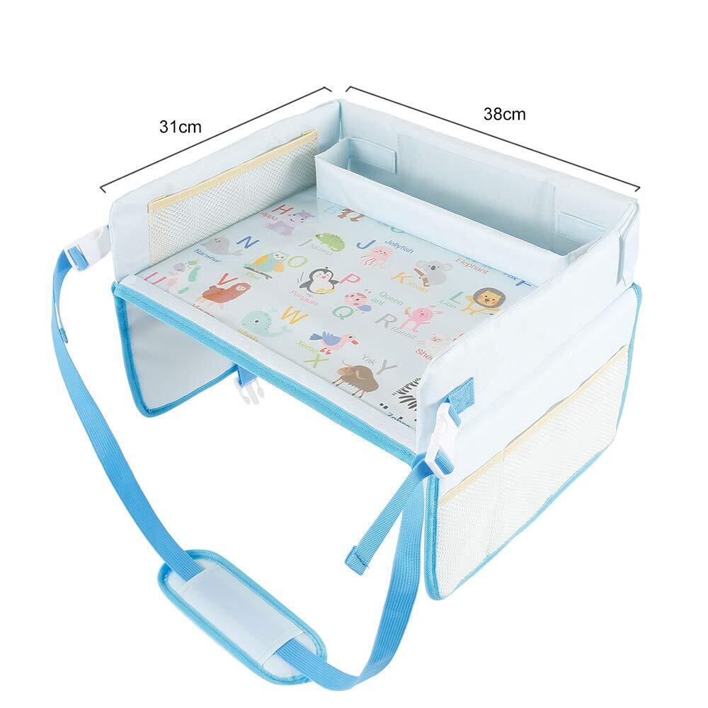 ORFINA チャイルドトレイ チャイルドシート ベビーテーブル アップグレード版 お絵かきテーブル 車載収納 固定バンド付き 座席サイドテーブル ボトル 子供用車 おもちゃ収納ポケット 食事遊び 読書 おでかけ 旅行に大活躍 持ちやすい (ブルー)