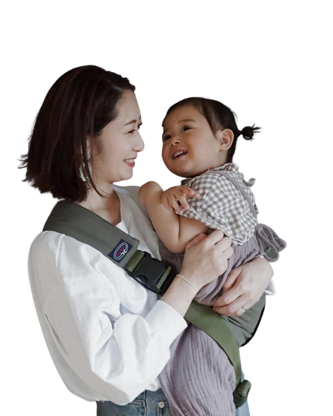 【お手軽に抱っこ】遊び疲れた我が子を軽々片手抱っこ。抱いて、下ろしての繰り返しも、もう安心。もう片方の手は自由にできます。